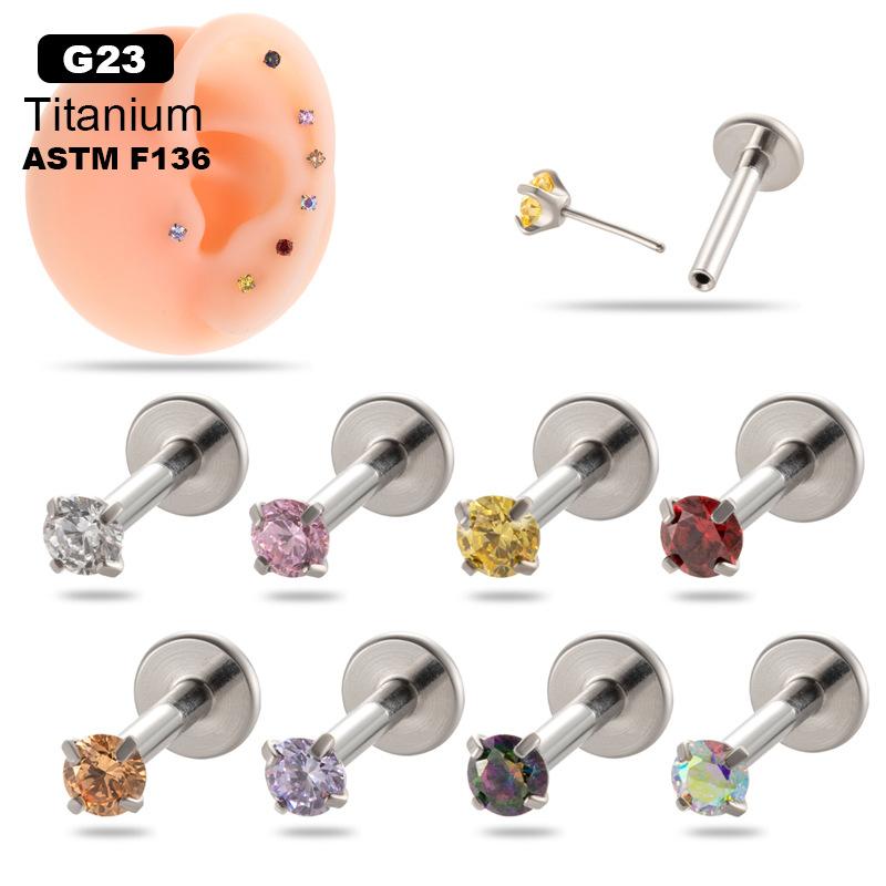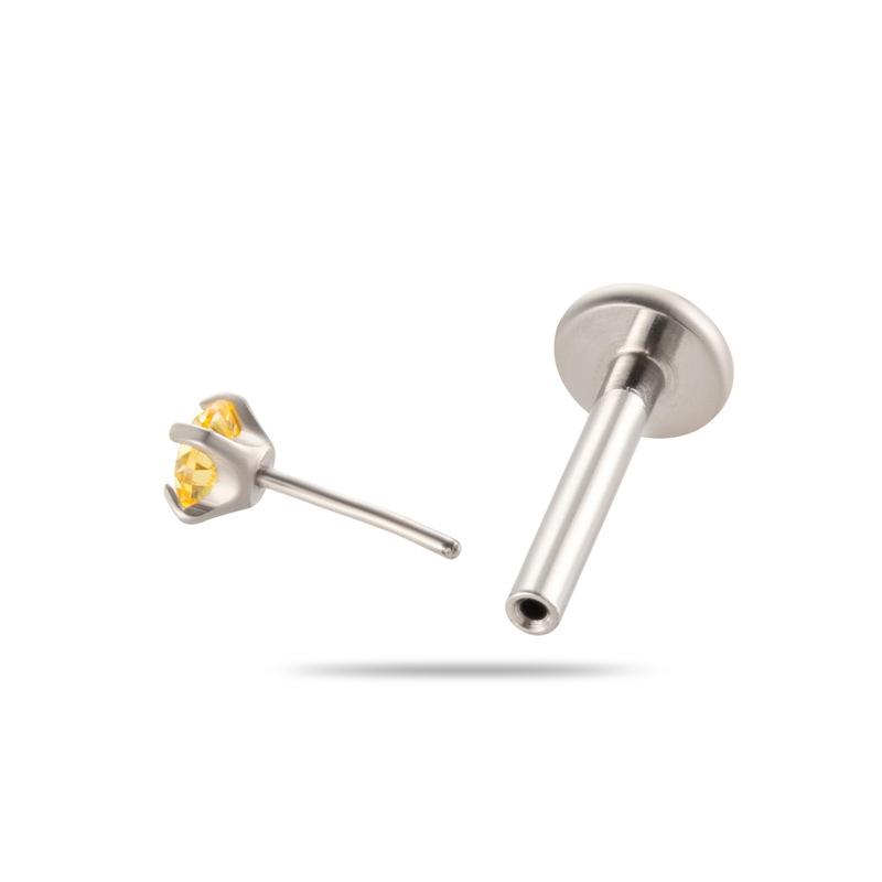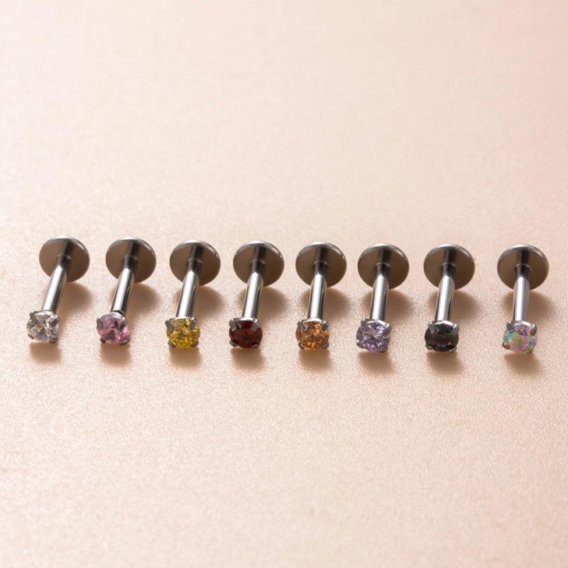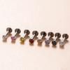 | Nome do Produto | Liga de titânio incrustada com zircônia colorida 1.2*8mm pino de inserção push pin haste labial unha de orelha unha de osso da orelha unha coclear joia de piercing |