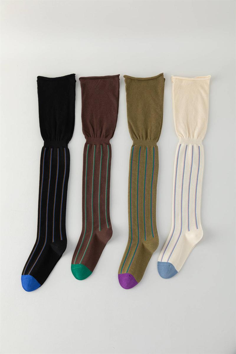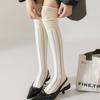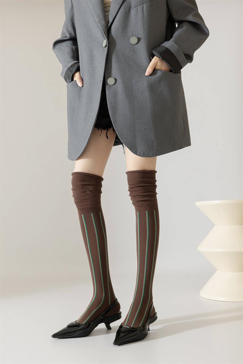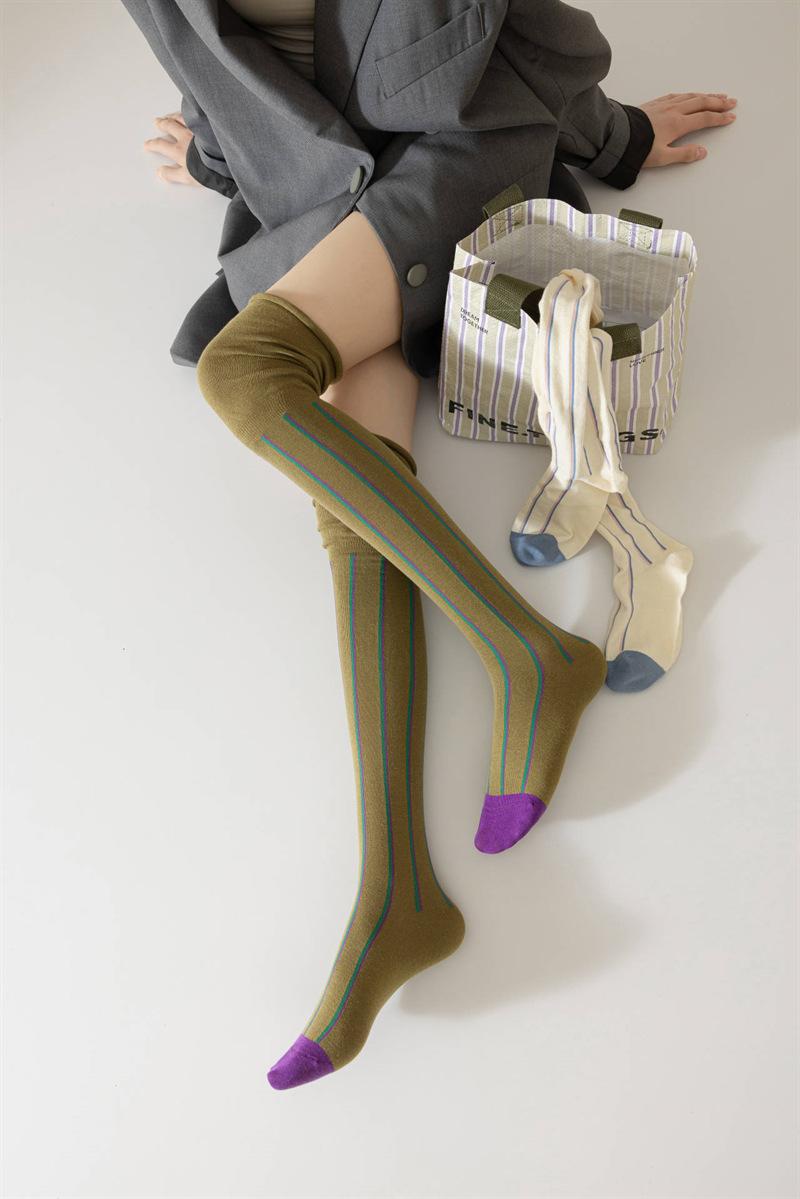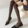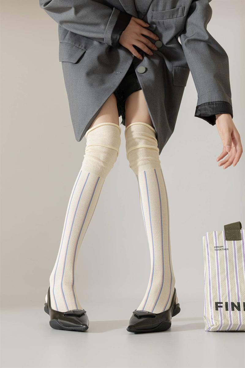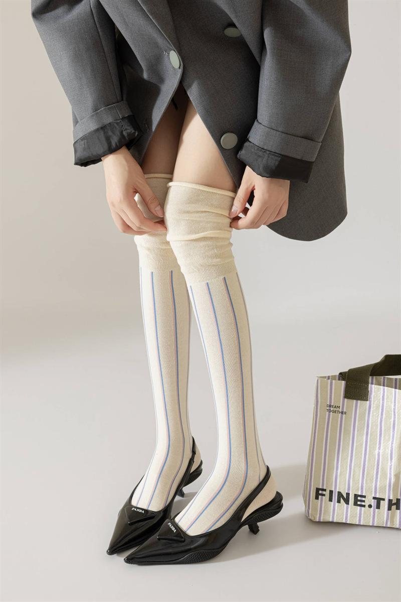 Meias femininas de novo estilo com listras verticais, meias de alta qualidade, personalidade elegante, estilo retrô, meias acima do joelho