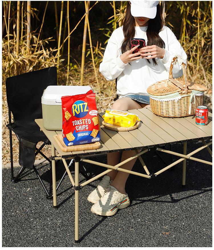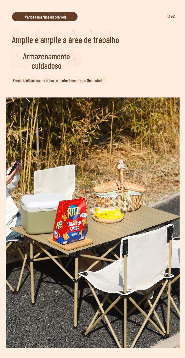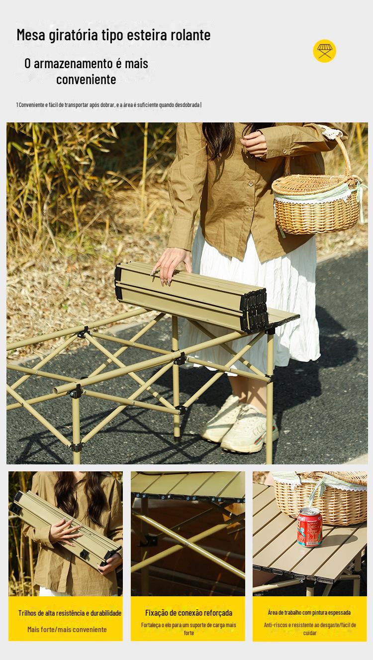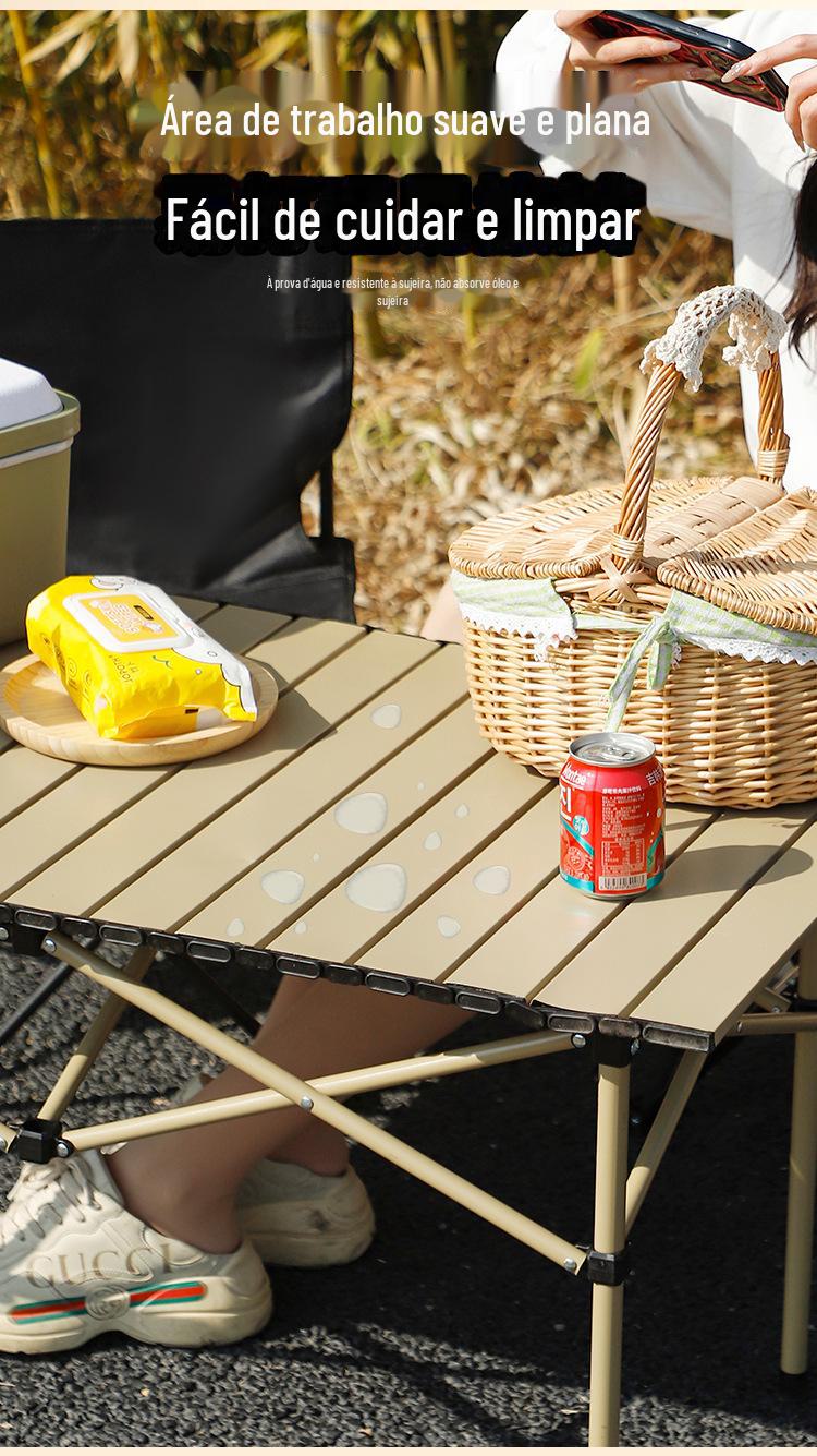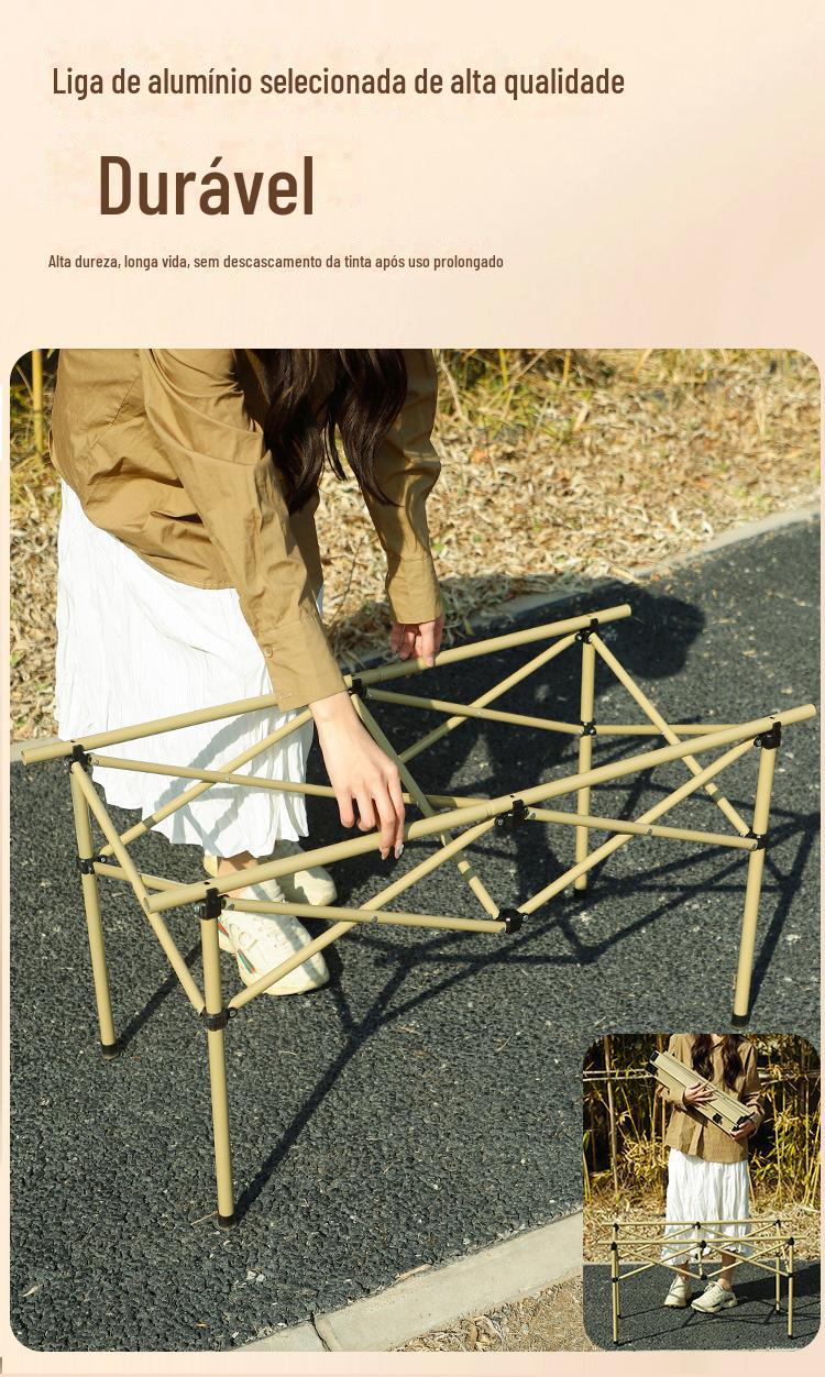 Mesa Dobrável Portátil para Exterior para Camping, Mesa de Metal Enrolável para Camping, Churrasco, Piquenique e Barraca de Mercado Noturno
