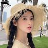 Estilo de férias chapéu de palha feminino verão rave big edge face-cobrindo protetor solar gancho chapéu de palha feminino coreano tecido chapéu de sol