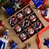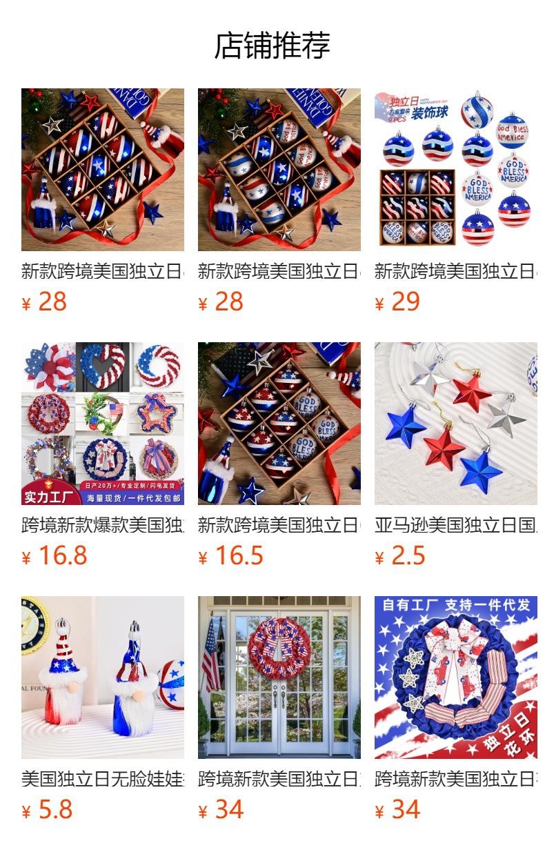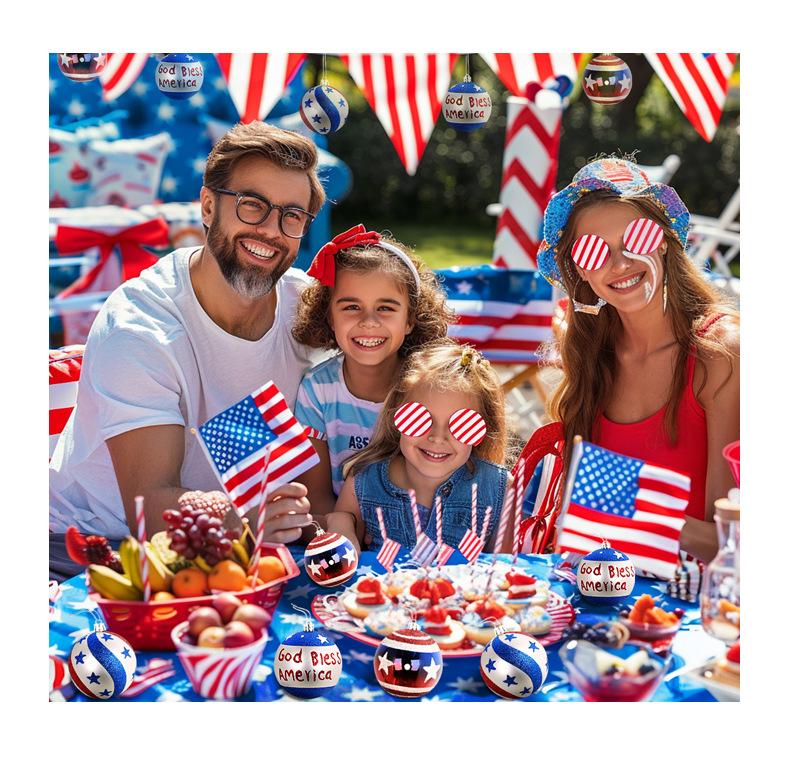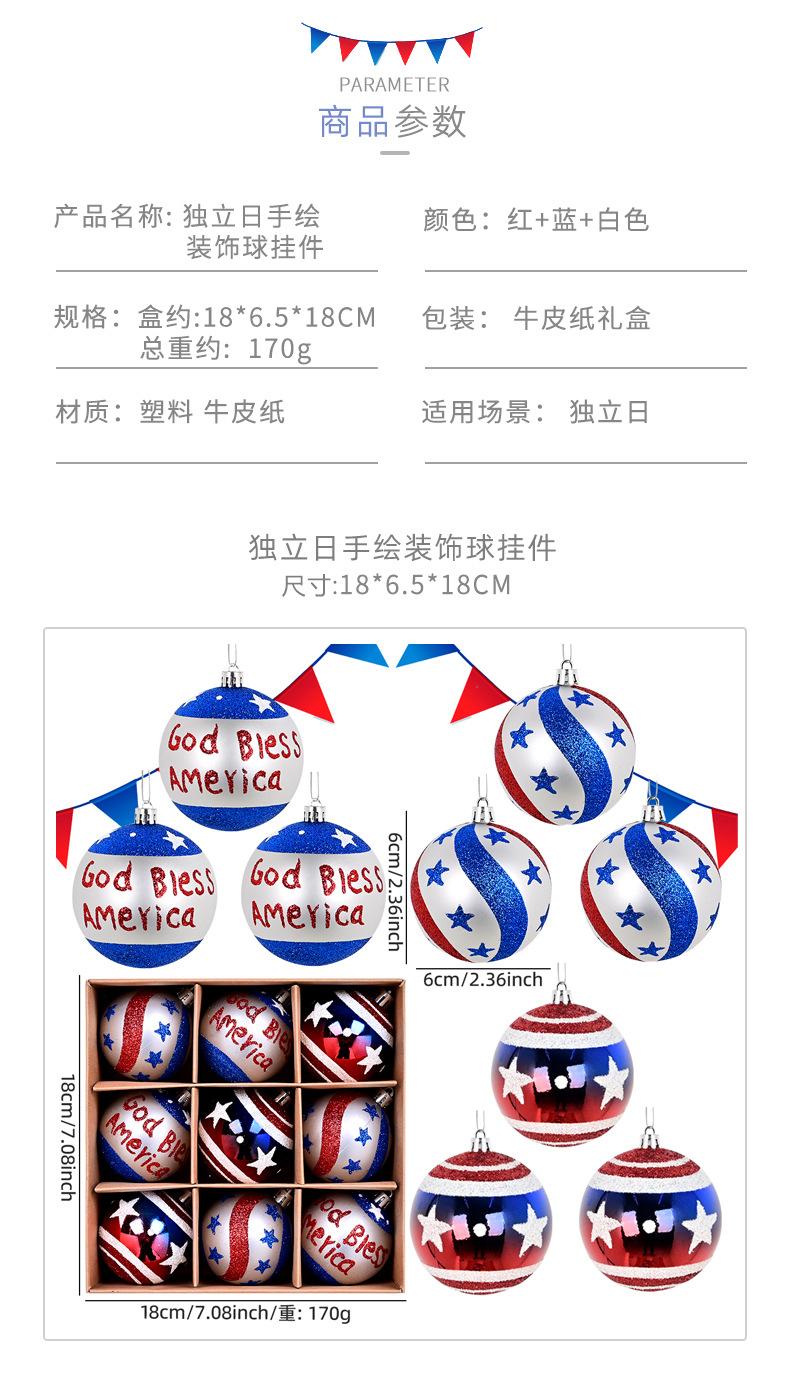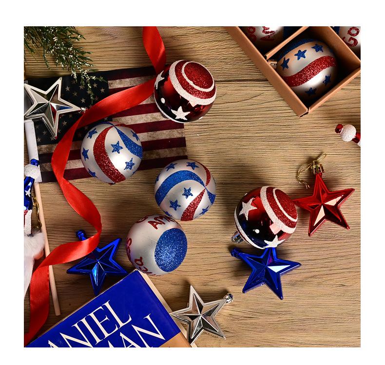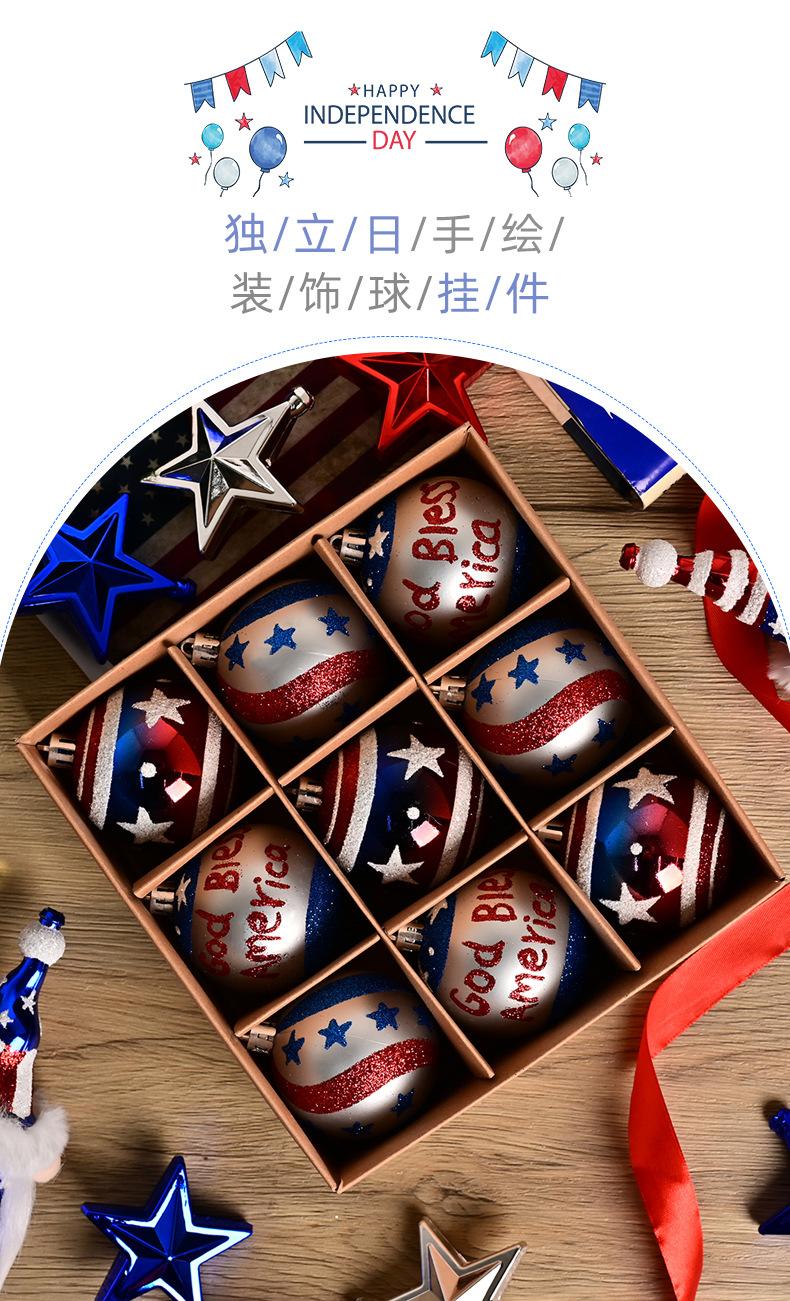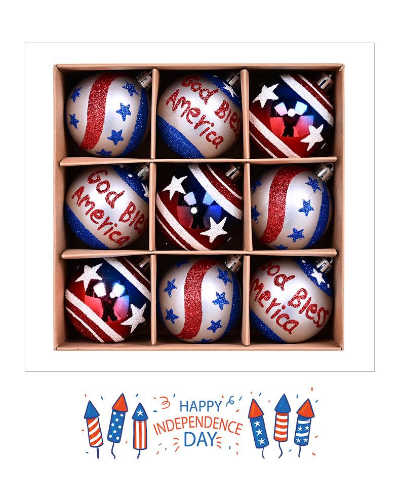 Novo conjunto de caixa de 6 cm-9 peças do Dia da Independência dos EUA transfronteiriço PS galvanoplastia pintado à mão vermelho, branco e azul decoração do Dia Nacional