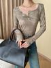 Sinan Camiseta Casual com Barra Arredondada, Cintura Marcada, Gola Henry, Ombro Direito, Estilo Desgastado de Terra Baldia Sn4656