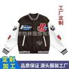 Jaqueta de Beisebol Piloto de Comércio Exterior Personalizada Estilo Americano Marca Moderna Logotipo Bordado em Toalha Jaqueta Pu Patchwork Lã Color-Blocking Casaco Inverno