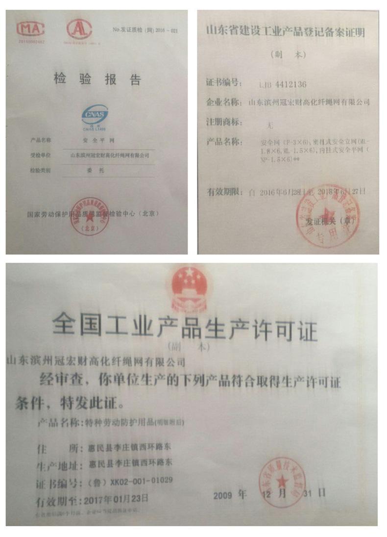 O equipamento principal da empresa agora inclui 28 conjuntos de máquinas de tecelagem de malha fechada, 6 conjuntos de máquinas de tecelagem de grande escala totalmente automáticas, 10 conjuntos de máquinas de torção, 16 conjuntos de teares de fita e 36 conjuntos de máquinas de fechamento de corda. Os principais produtos incluem redes de segurança, redes verticais de segurança de malha fechada, cintos de segurança, redes de transporte, redes de reprodução, redes de empilhamento, redes de içamento, escadas aéreas, várias cordas, retardantes de chamas, masterbatches, fios de alta resistência, fios de média resistência, geotêxteis, geogrelhas, artigos esportivos, etc. A empresa possui equipamentos de produção avançados, forte força técnica, sistema de garantia de qualidade perfeito e equipamento de teste completo. É uma empresa do mesmo setor na província que passou pela certificação do sistema de gestão de qualidade internacional ISO9001:2000 e tem o direito de importar e exportar. A rede de vendas de mercado é sólida e o mecanismo de vendas diretas de região fixa é implementado. Escritórios de vendas diretas foram criados em 18 cidades-chave, como Pequim, Qingdao, Dezhou e Xi'an. Seus produtos estão em todos os lugares, exceto Taiwan e Tibete, e desfrutam de uma alta reputação no mercado doméstico. Redes de segurança da marca "Guanhong", redes verticais de segurança de malha fechada, cintos de segurança e outras séries de produtos foram classificadas como produtos confiáveis pelos usuários.