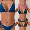 Novo biquíni de cor sólida halter lace-up maiô feminino biquíni multi-cor ajustável