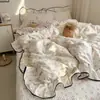 Conjunto de Quatro Peças de Algodão Puro de Alta Qualidade Estilo Princesa, Capa de Edredom com Bordas de Renda 100% Algodão, Adequado para Dormir Diretamente na Cama, Conjunto Estilo Colcha, Estilo Lençol com Elástico 4