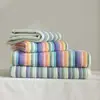 Conjunto de Toalhas Frescas Verdes com Listras Coloridas Simples, Toalha de Rosto, Toalha Quadrada Pequena, Toalha de Banho Ultra Macia Absorvente