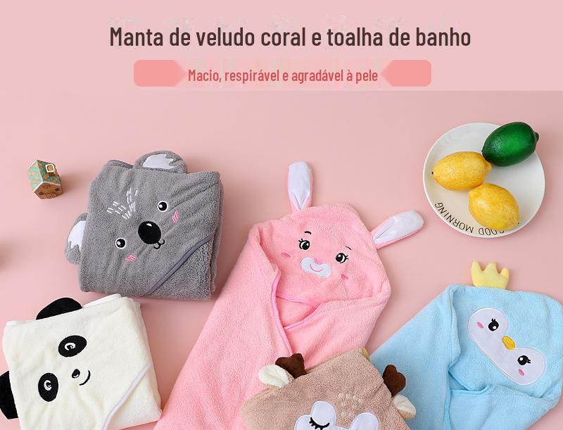 Toalha de banho infantil de lã coral, capa com capuz para bebê, manta fofa de desenho animado, cobertor de toalha de banho, macio, absorvente, secagem rápida