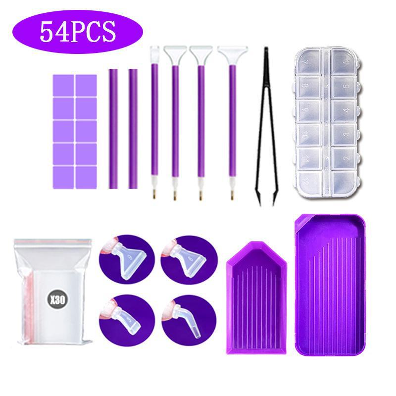 54PCS nova ferramenta de diamante cotovelo ponto de perfuração caneta 12 cada caixa de armazenamento conjunto funil grande ponto placa de perfuração multi-cor