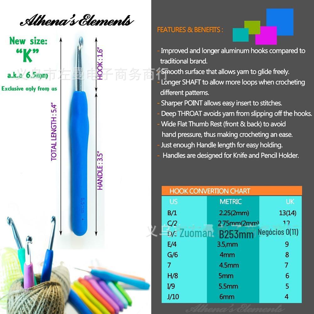 Modelo de crochê colorido:2,0 mm 2,5 mm 3,0 mm 3,5 mm 4,0 mm 4,5 mm 5,0 mm 5,5 mm 6,0 mm