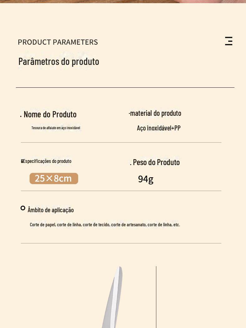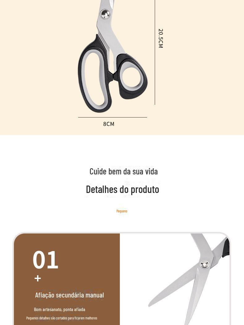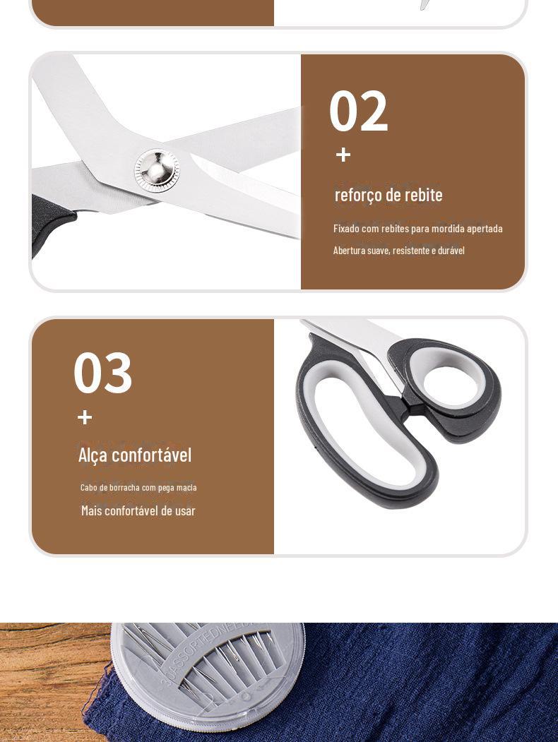 Tesoura de alfaiate de aço inoxidável Tesoura de costura doméstica Cortador de tecido Cortador de linha Tesoura doméstica grande multifuncional