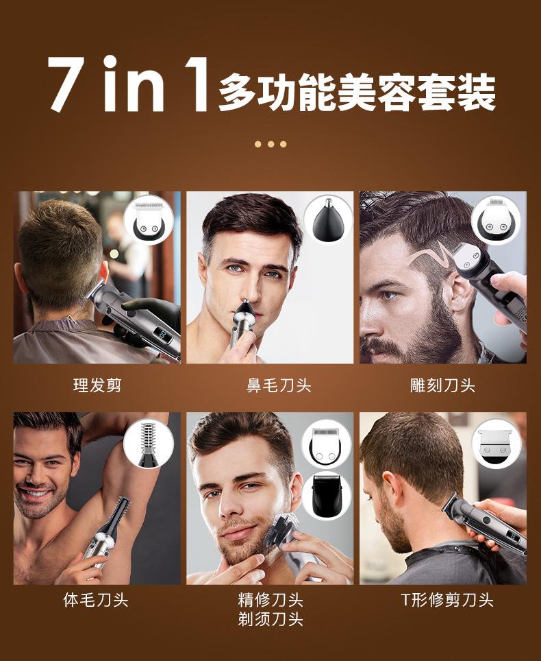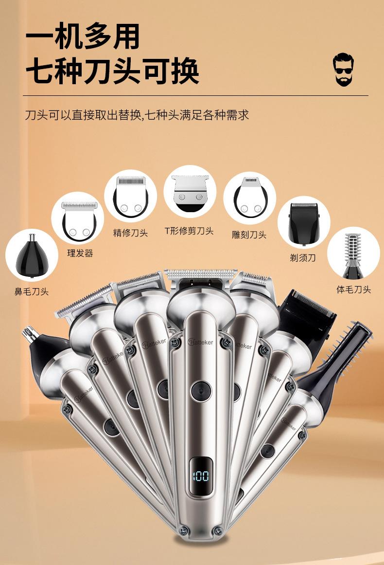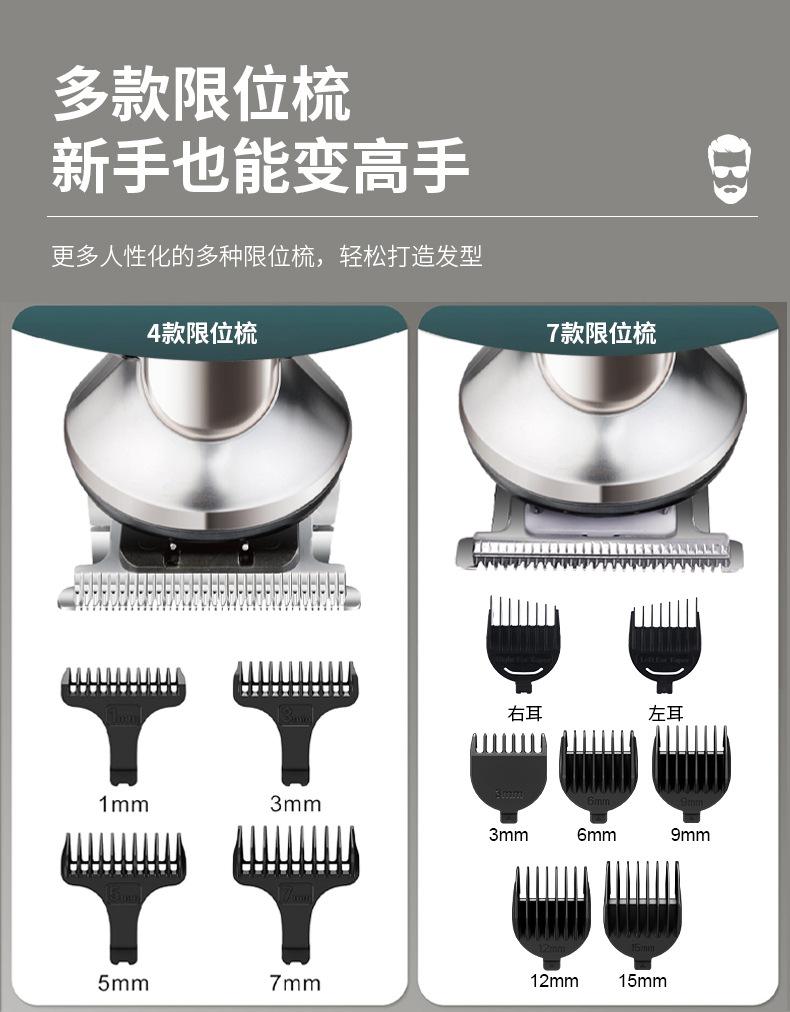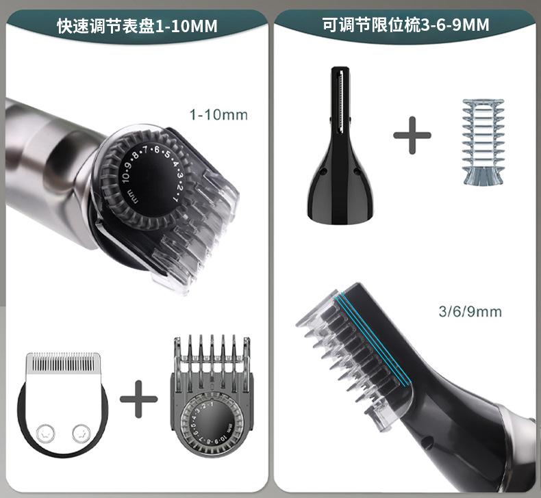 Acessórios: corpo, cabeça de corte de cabelo, cabeça de escultura, cabeça de barbear, cabeça de pelos do nariz, cabeça de pelos do corpo, cabeça em forma de U, cabeça em forma de T, paquímetro, manual de instruções, cabo USB, óleo lubrificante