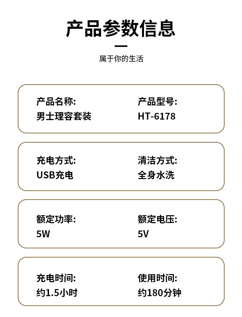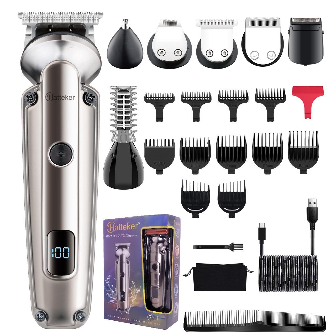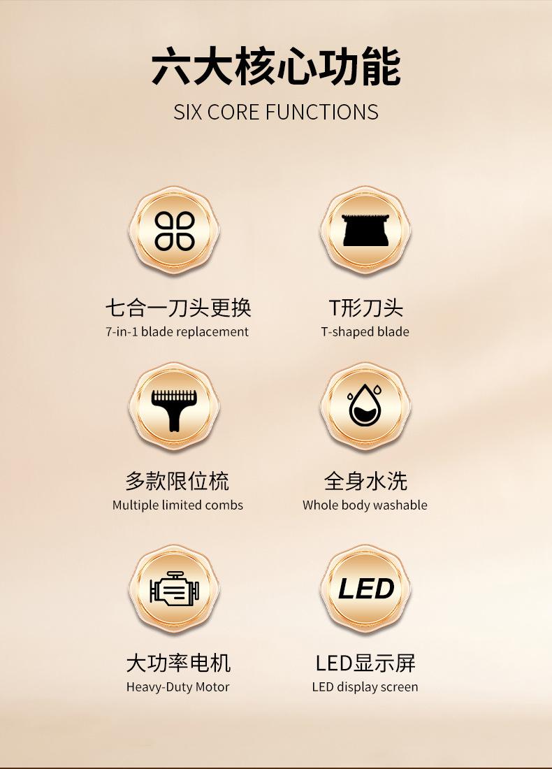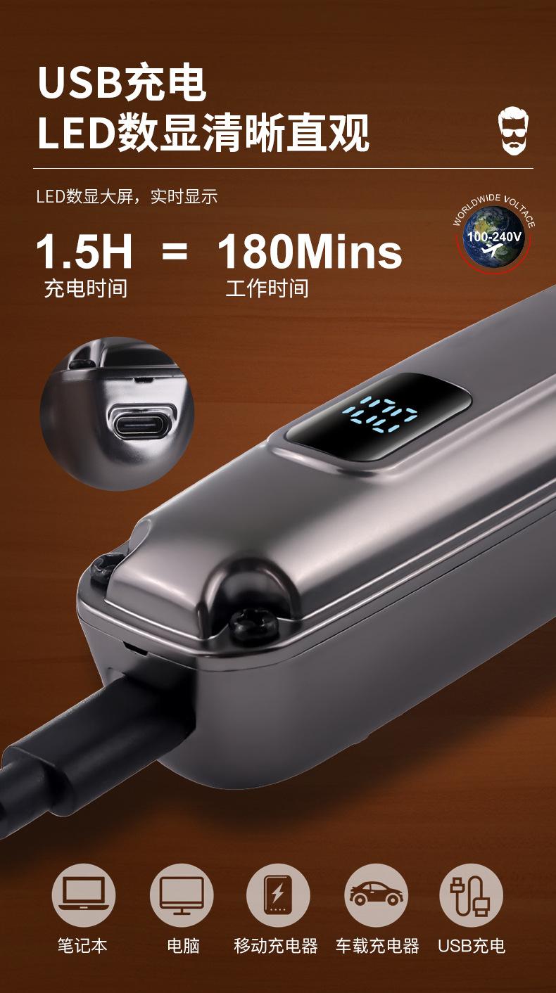 Acessórios: corpo, cabeça de corte de cabelo, cabeça de escultura, cabeça de barbear, cabeça de pelos do nariz, cabeça de pelos do corpo, cabeça em forma de U, cabeça em forma de T, paquímetro, manual de instruções, cabo USB, óleo lubrificante