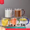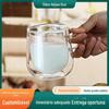 Copo redondo divertido de camada dupla com alça copo de leite copo de copo de copo de água beber água espessa de camada dupla de água de vidro