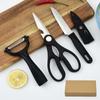 Aço inoxidável cabo preto com furo pendurado faca de fruta clipe nogueira osso de frango tesoura descascador cozinha faca pequena conjunto de três peças