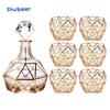 Conjunto de dispensador de vinho em vidro com folha de ouro, copo de vinho pequeno, copo de vinho de uma peça, copo de vinho, caixa de presente