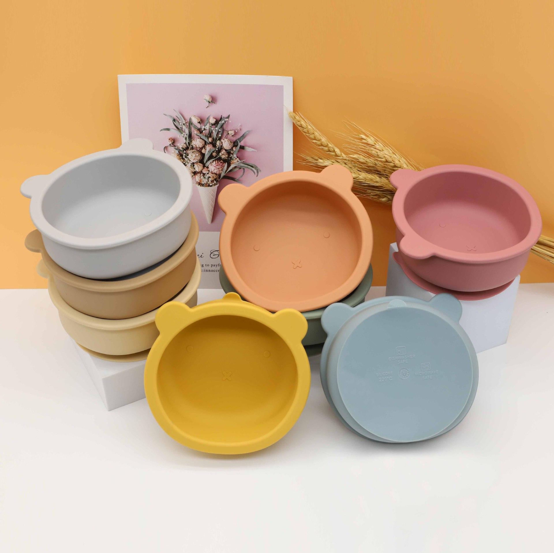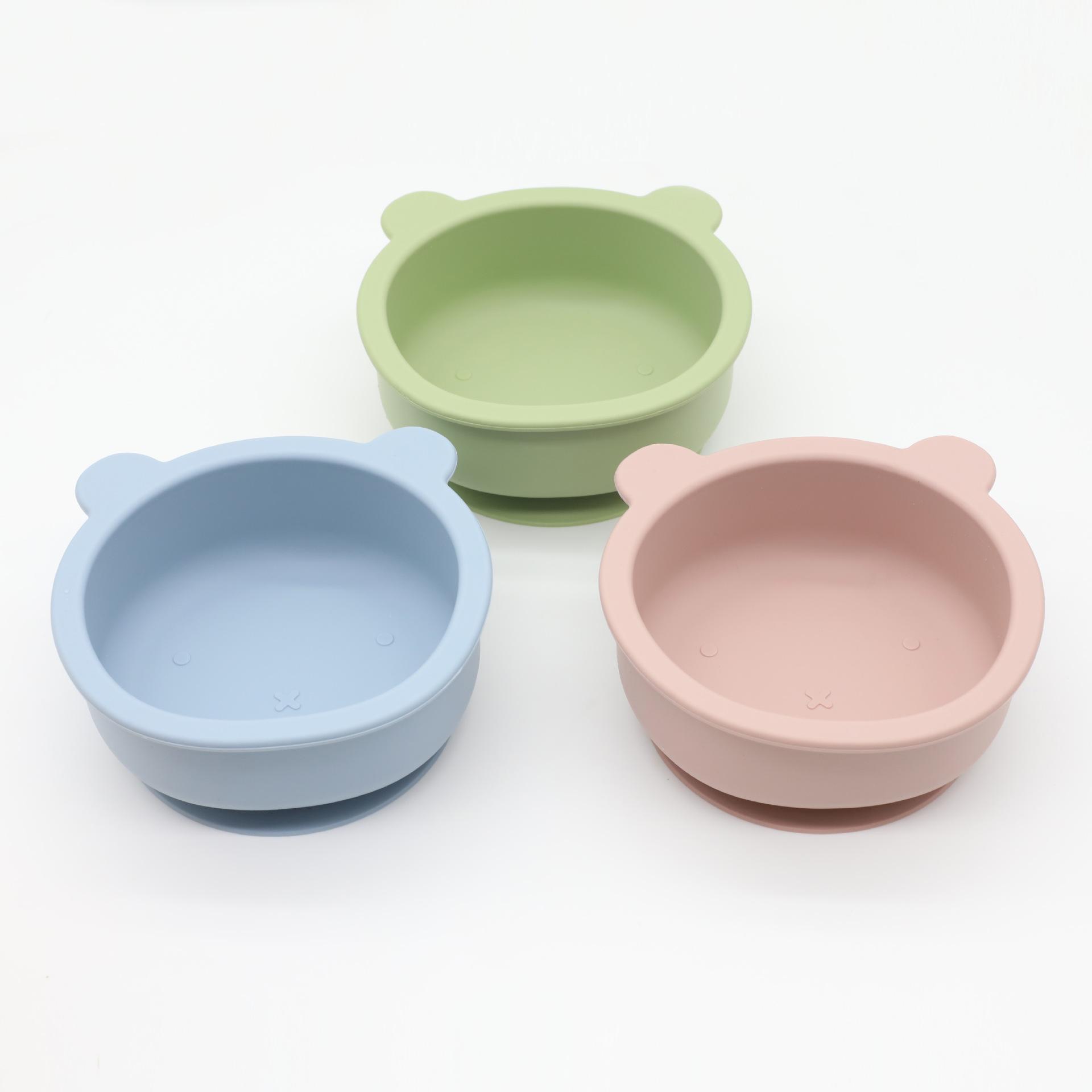 Bebê silicone urso tigela suplemento alimentar colher com ventosa resistente a gotas de silicone de grau alimentício pasta de arroz colher de alimentação do bebê talheres Tigela