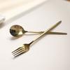 Garfo e Colher de Aço Inoxidável 304 Banhados a Ouro Talheres Ocidentais Criativos Hashis Colher Fruta Sobremesa Selec Colher e Garfo para Salada Cabo Longo