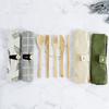20cm portátil bambu colher garfo pauzinhos escova de palha seis peças set estudante viagem ao ar livre conjunto de bambu louça