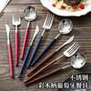 304 aço inoxidável nogueira cabo faca e garfo colher madeira colorida madeira maciça colher garfo espelho Português Western Restaurante Hotel Tableware