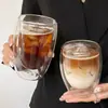 Copo térmico de vidro transparente em formato de ovo com dupla camada, ideal para leite, café, suco e outras bebidas. Feito em vidro borossilicato de alta qualidade.