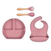 Fábrica Best Selling Baby Silicone Food Jantar Suplementar Prato Colher Garfo Bib Split Dinner Plate 4 Piece Set Food Pacote de Treinamento Suplementar