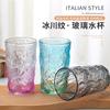 Copo de Vidro Glacial Colorido Atacado com Textura Martelada, Copo de Uísque Criativo, Copo Doméstico para Café Transparente Listrado, Estilo Ins