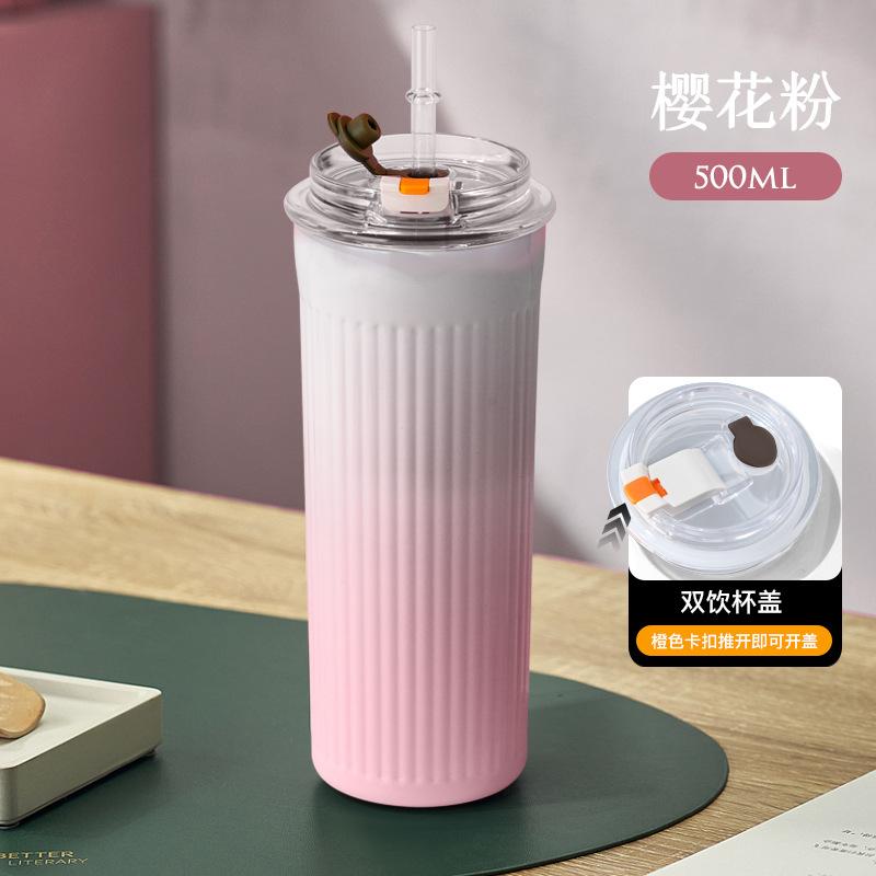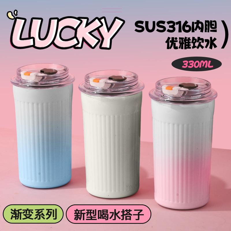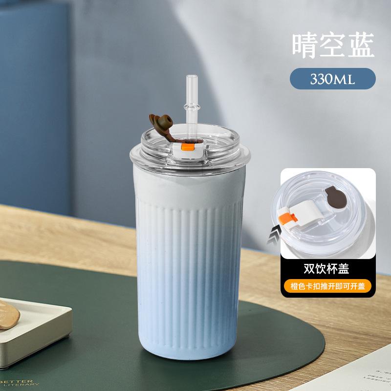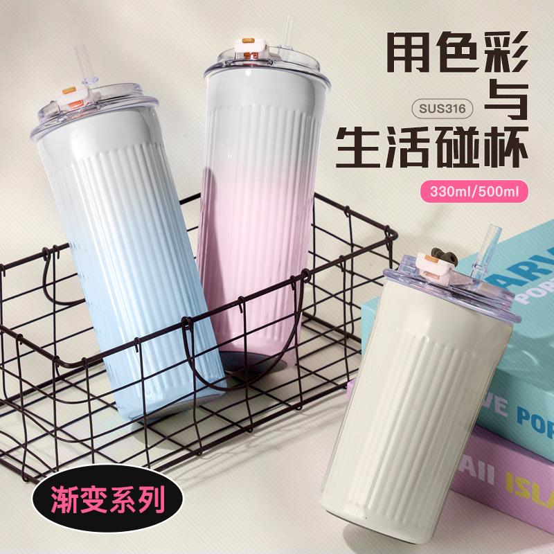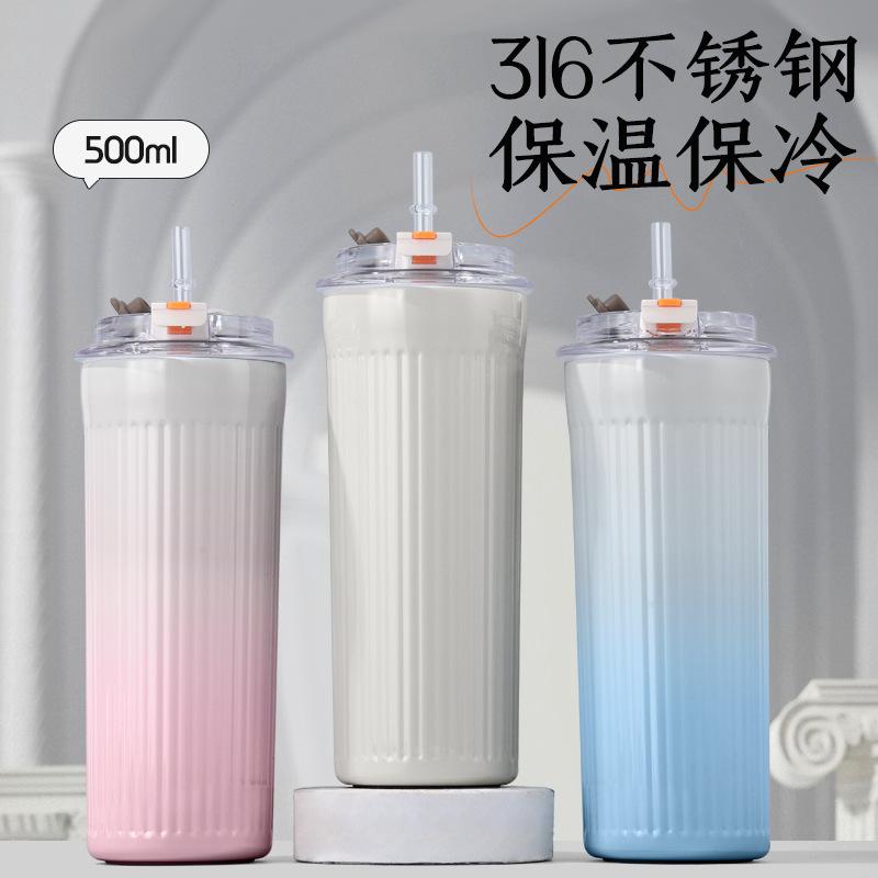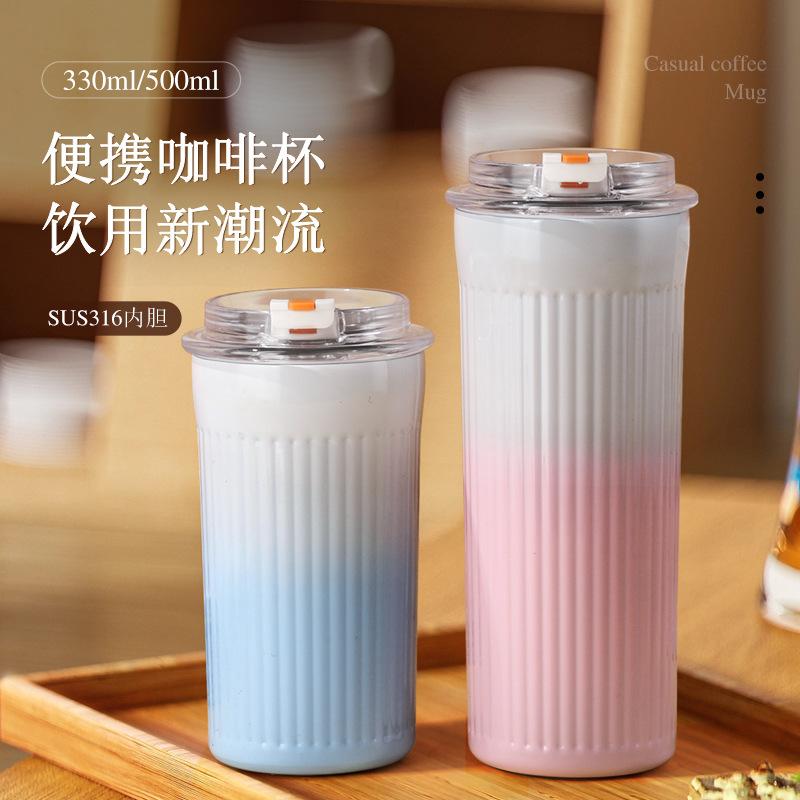 Verão Nova Moda Aço Inoxidável 316 Vácuo Thermos Cup Striped Straight Cup Double Drinking Portable Rope Coffee Cup
