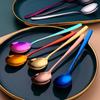 Colher de Aço Inoxidável 304 Colher Doméstica Espessada Cabo Longo Colher Coreana Colher de Comer Talheres de Hotel Restaurante Colher para Comida Ocidental