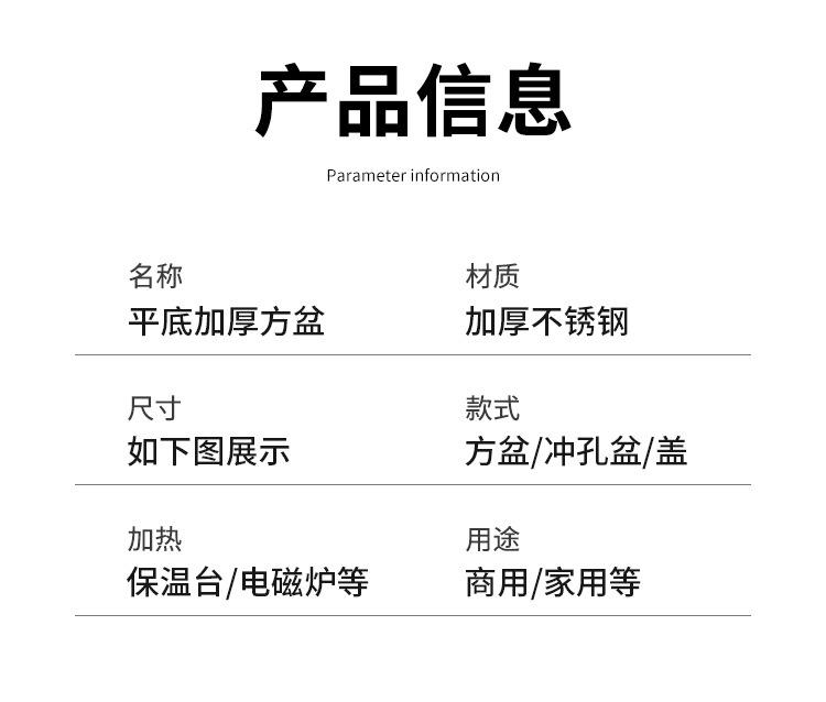 ■ Questão de tamanho: Os produtos de aço inoxidável normalmente não têm tamanho real. Por exemplo, uma bacia de 26 cm tem na verdade apenas 25 cm ou 25,5 cm, uma diferença de cerca de 1 cm. Se você quiser saber o tamanho real, pergunte ao atendimento ao cliente. A indústria do aço inoxidável é bastante especial, por isso é aconselhável que os compradores entendam.