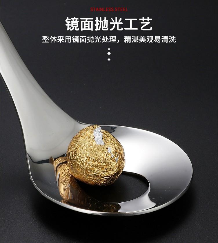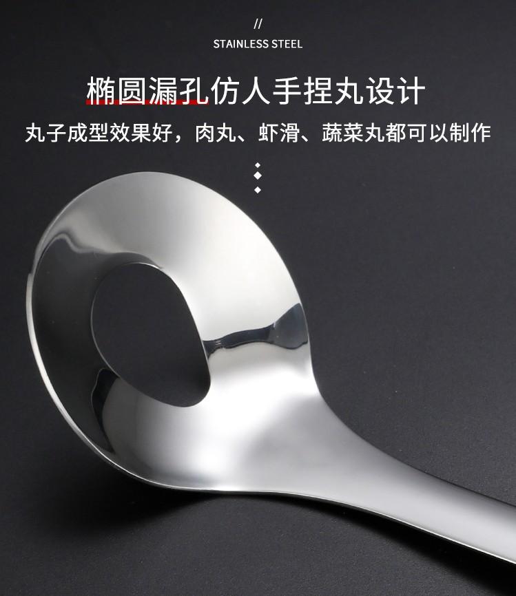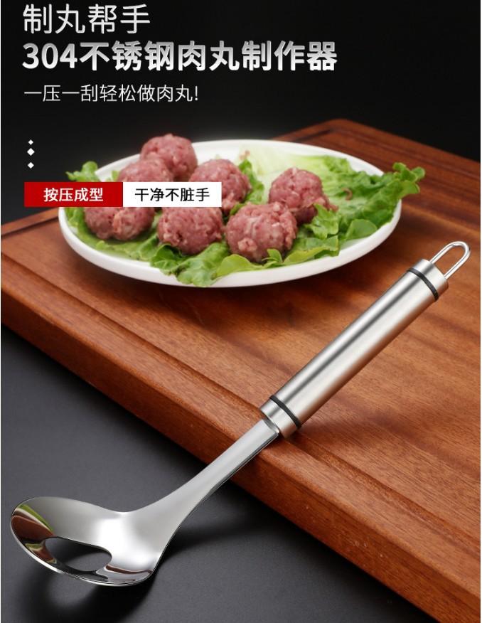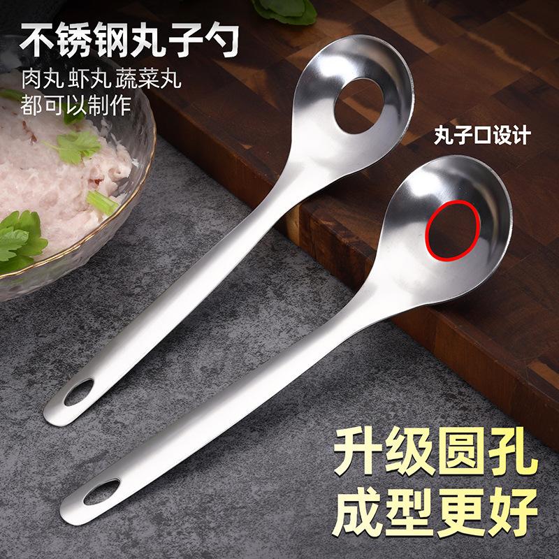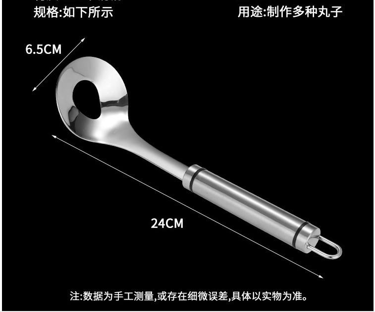 Colher de almôndega 304 Tamanho: Cabo não magnético 201 + cabeça de colher 304 [ênfase no logotipo 304 com carimbo de aço] Peso único cerca de 70 gramas Comprimento 26 cm Diâmetro da colher 6 cm Comprimento interno da boca 3,5 cm largura 2,5 cm