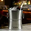 Balde de Champagne Dupla Camada em Aço Inoxidável Estilo Luxo, Recipiente para Bebidas Geladas (Cerveja e Destilados) para Bar KTV, Balde de Gelo com Duas Alças