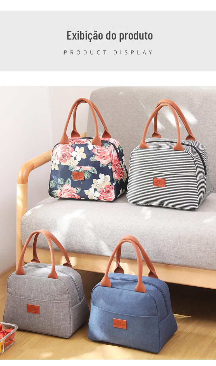Cross-border novo saco de isolamento de folha de alumínio atacado saco de lancheira portátil saco de almoço de impressão Oxford pano de impressão saco de almoço impermeável