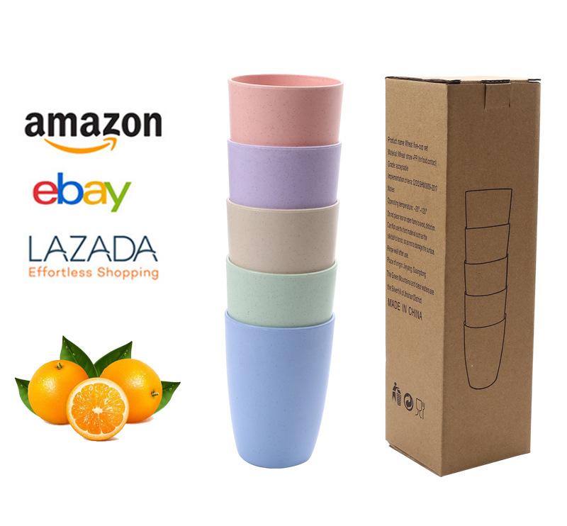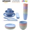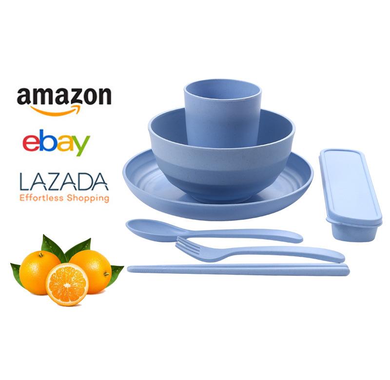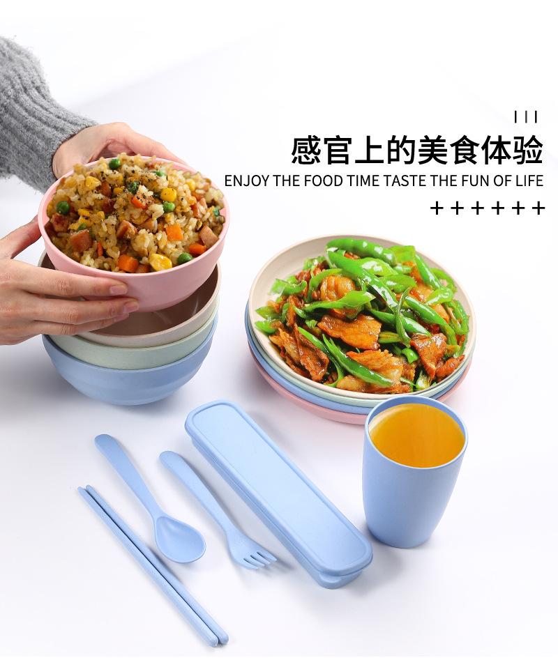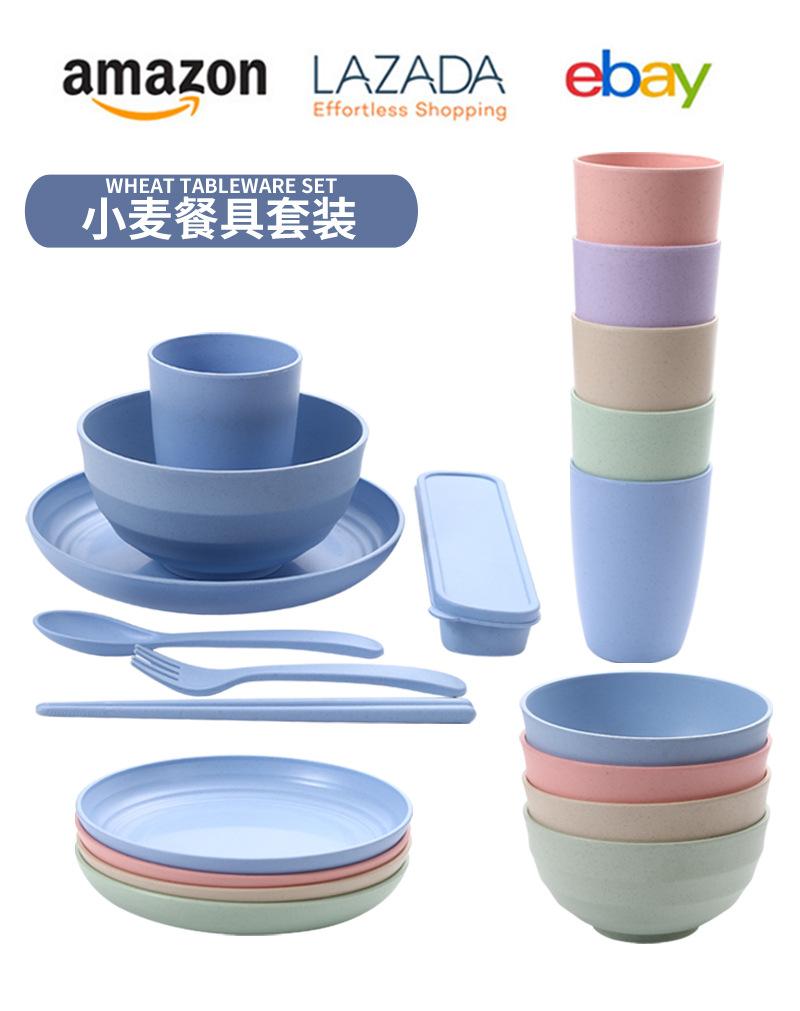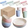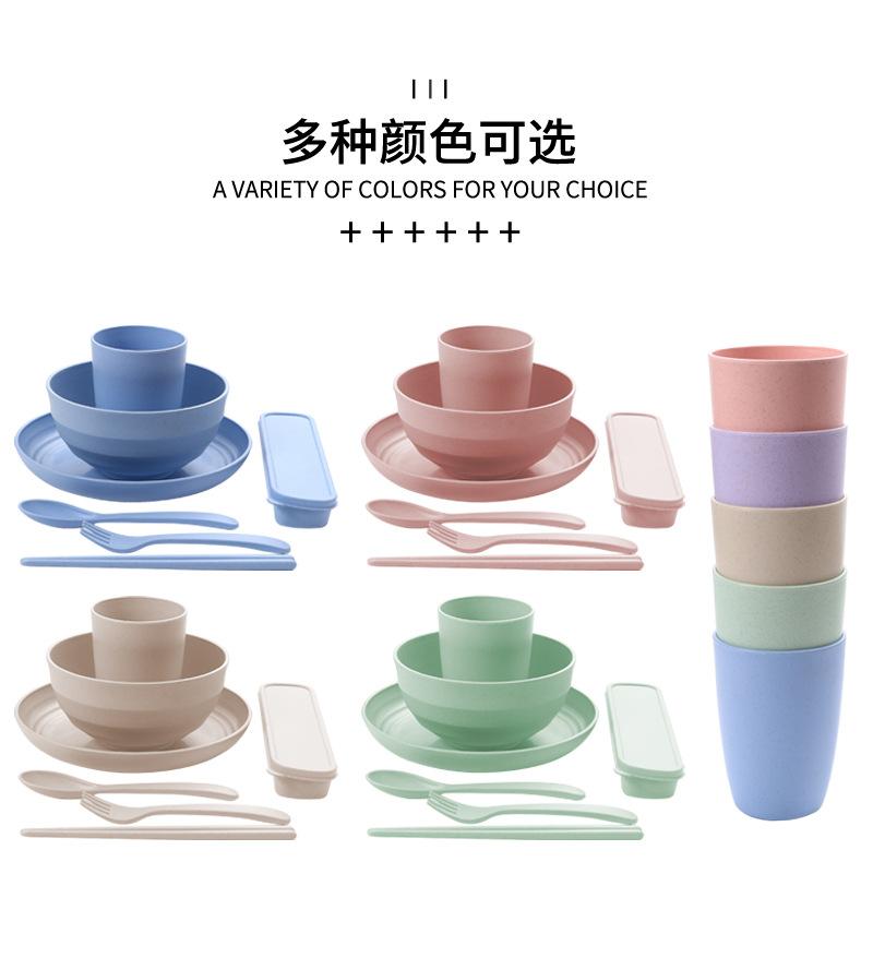Compre Louça de Palha de Trigo Transfronteiriça, Conjunto Simples de 28 Peças, Pratos, Pratos Fundos, Copos, Talheres, Garfos e Colheres, Caixa Portátil com Logotipo Imprimível no atacado no Joom.pro
