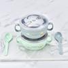 Tigela de arroz dos desenhos animados das crianças de aço inoxidável de camada dupla isolada tigela de suplemento alimentar do bebê tigela com alça tigela resistente a gotas com colher de tampa