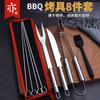 Fábrica ponto de aço inoxidável ferramenta de cozimento oito peças saco de pano churrasco garfo clipe varredura churrasco ferramentas de panificação atacado comércio exterior