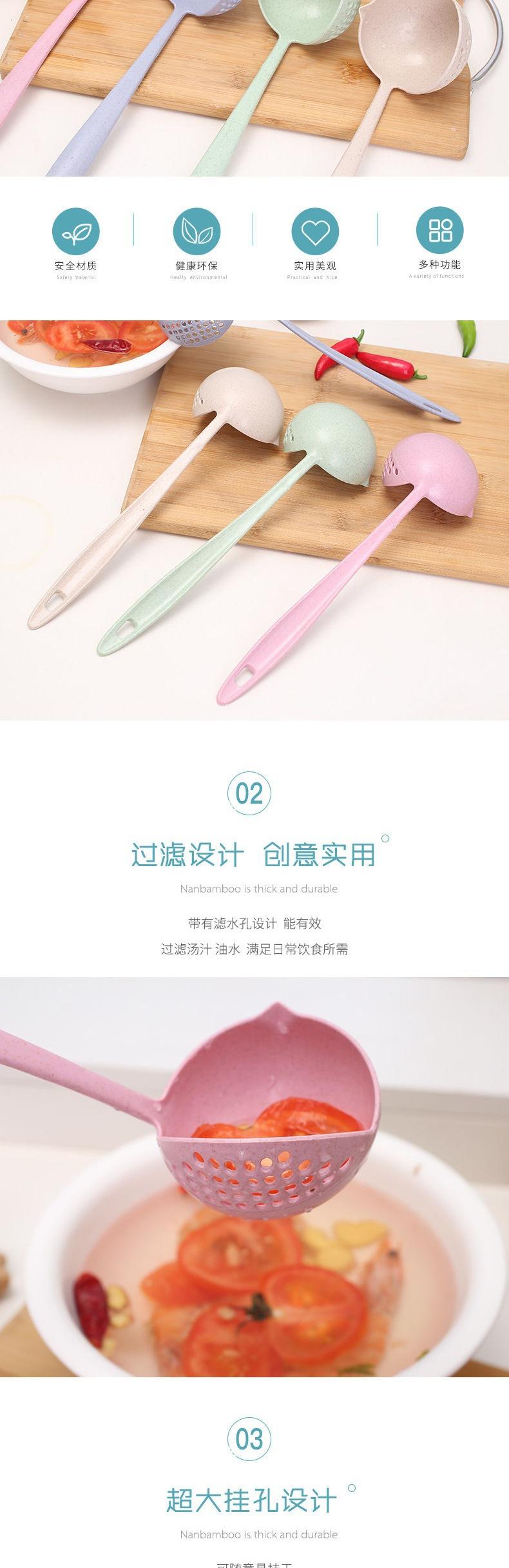 Palha de trigo coador de sopa dois-em-um colher de sopa resistente a altas temperaturas doméstico hot pot coador mingau colher Cozinha sopa coador dual-use colher