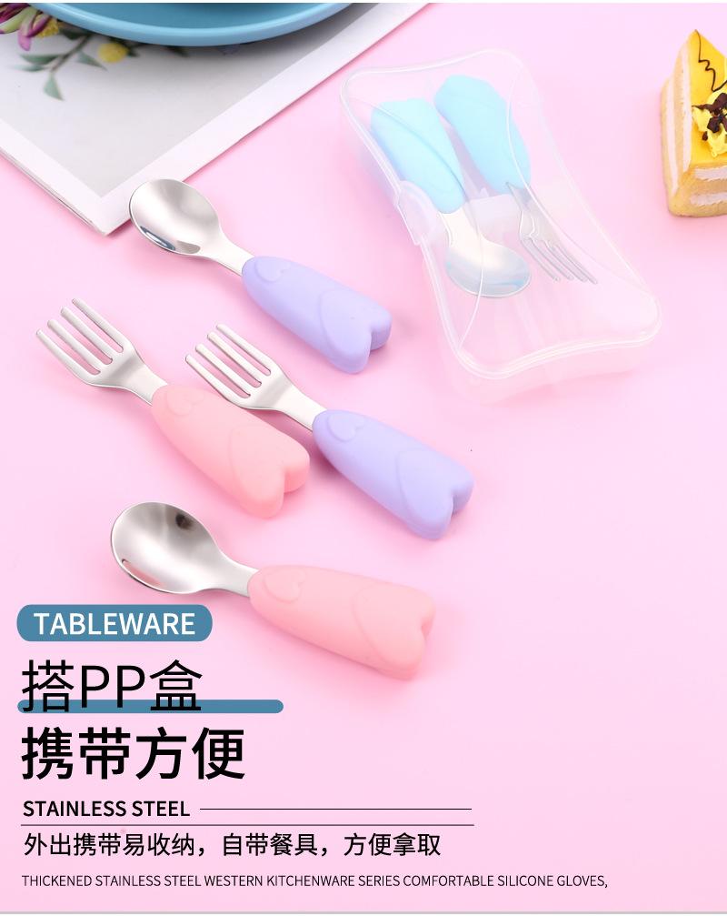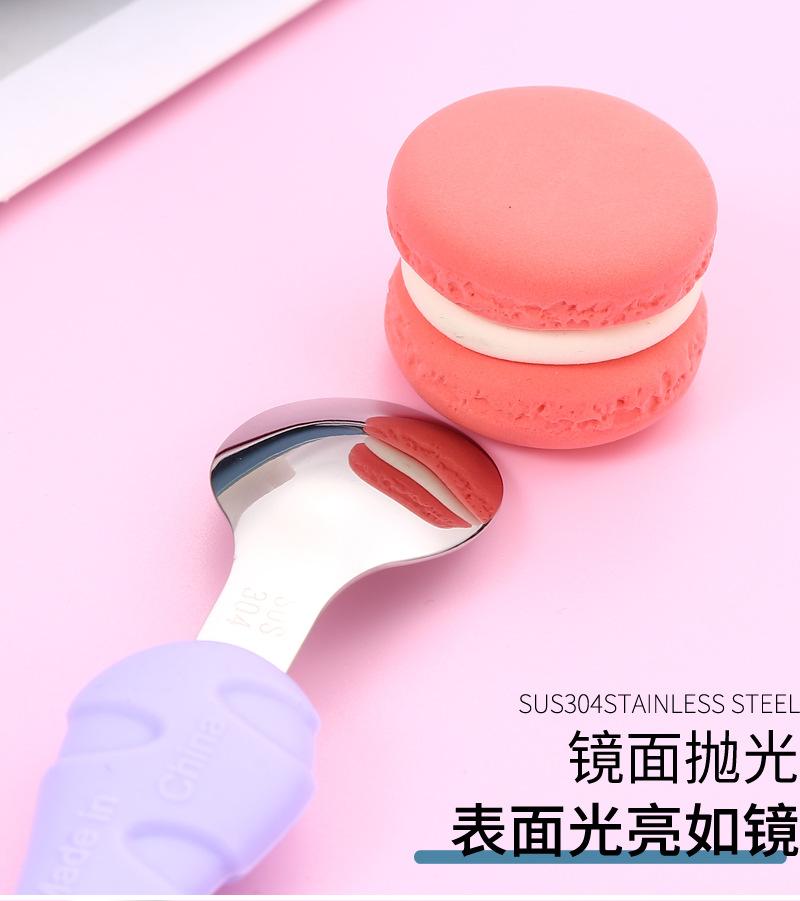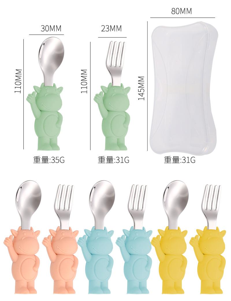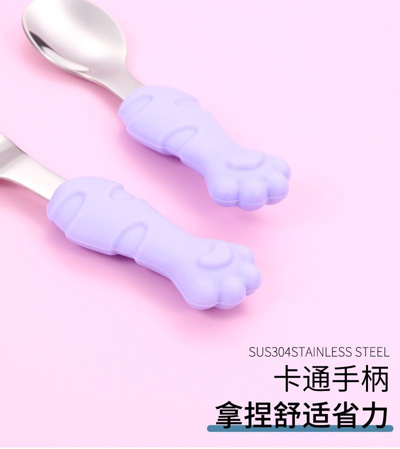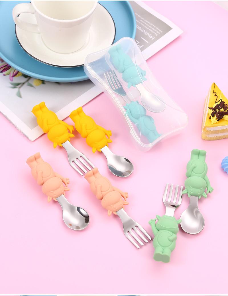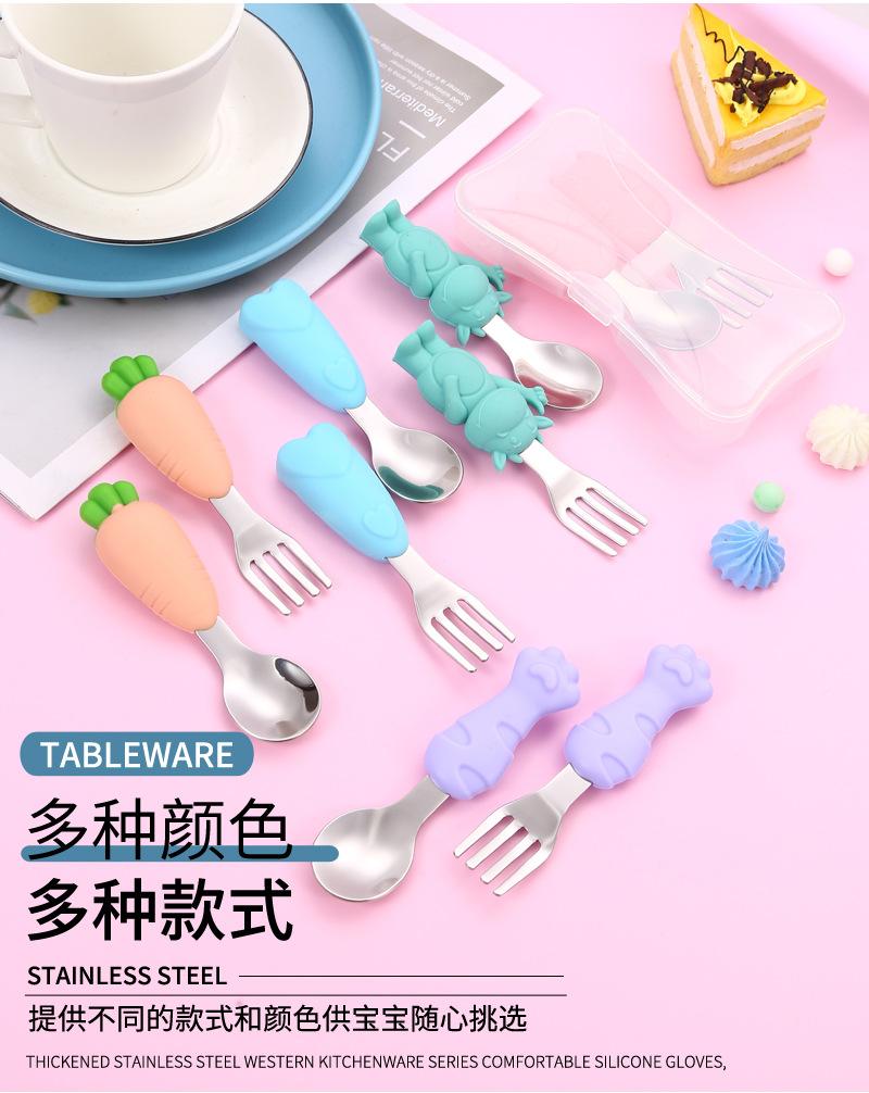 304 aço inoxidável crianças talheres alimentação colher silicone colher desenho animado bebê suplemento alimentar comer colher talheres terno