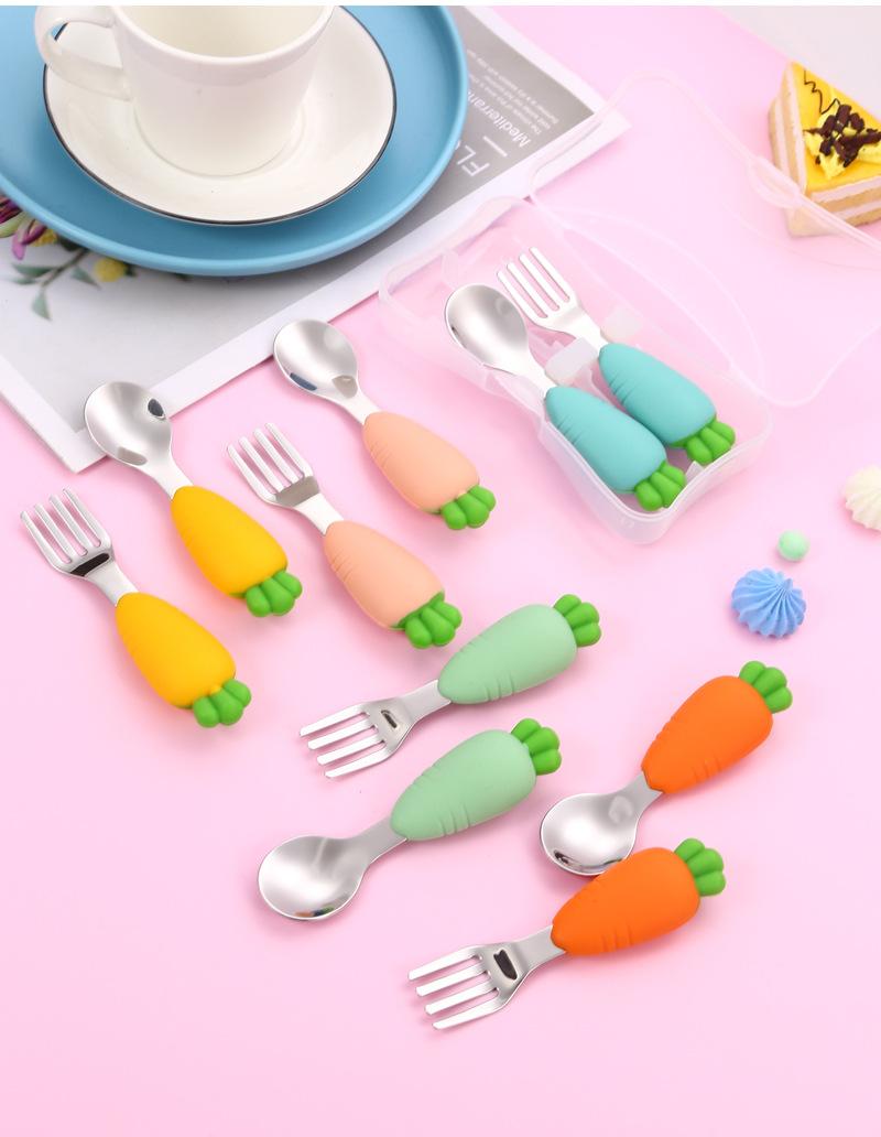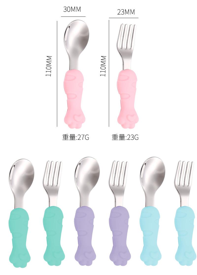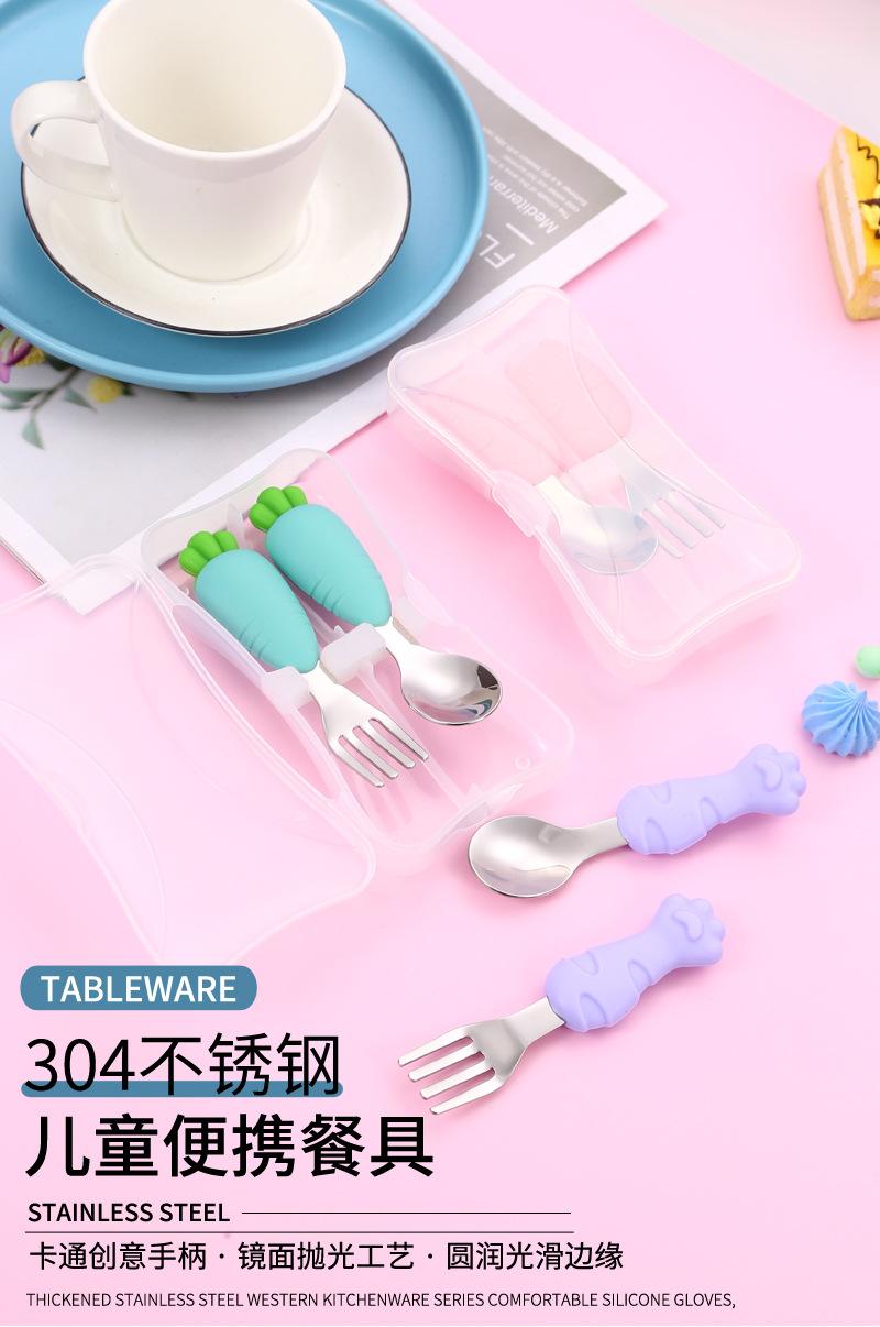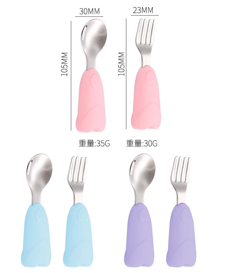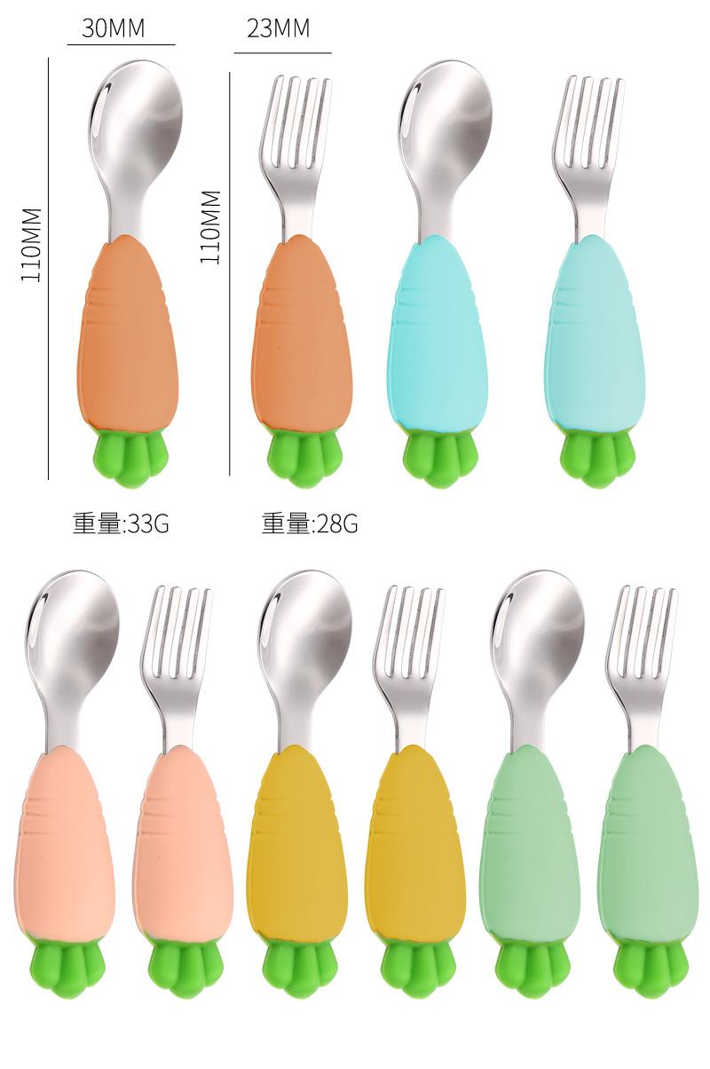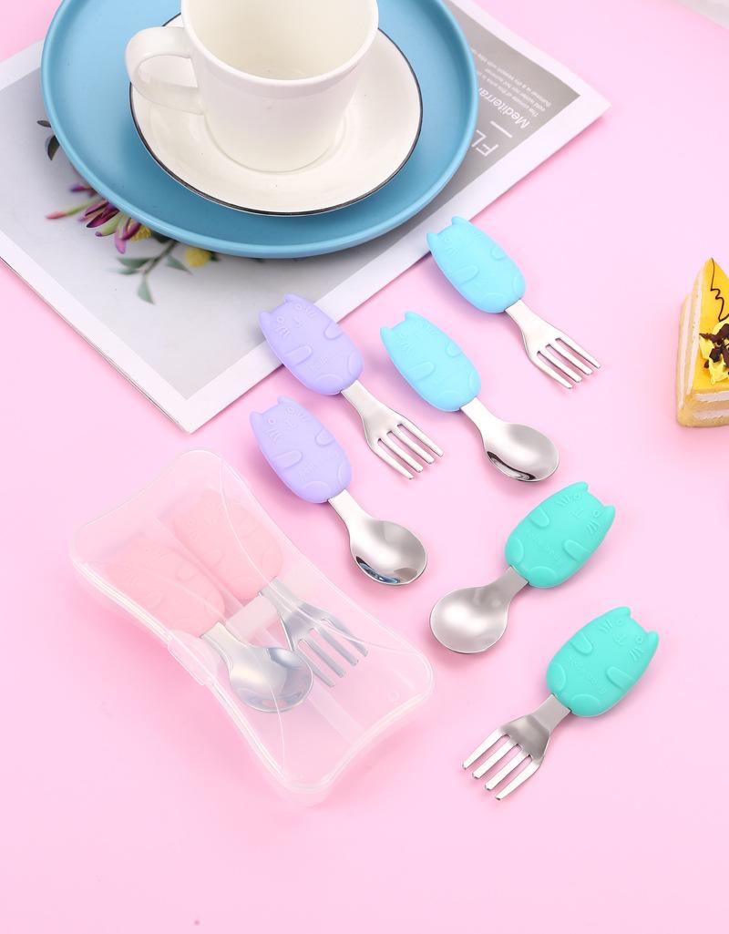304 aço inoxidável crianças talheres alimentação colher silicone colher desenho animado bebê suplemento alimentar comer colher talheres terno