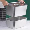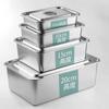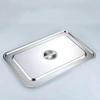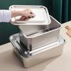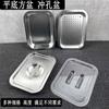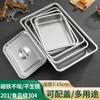 Bacia quadrada de fundo plano de aço inoxidável, prato retangular espesso e quadrado com tampa, bacia de buffet para fast food, bandeja de arroz cozido no vapor aprofundada