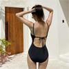 Oferta especial] nova versão coreana do simples retro backless cor sólida de uma peça maiô feminino pequeno peito coberto barriga fina primavera maiô termal