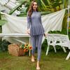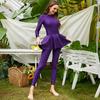 Comércio Exterior Europeu e Americano Manga Longa Proteção Solar Maiô de Peça Única Totalmente Coberto S-5Xl Transfronteiriço Cor Pura Árabe Maiô Conservador