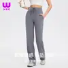 Calças de Perna Larga Femininas Nude Primavera e Outono Retas Casuais Esportivas Cintura Alta Elástico Falsas Soltas Calças de Yoga Lulu
