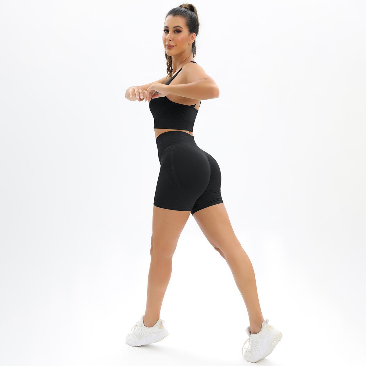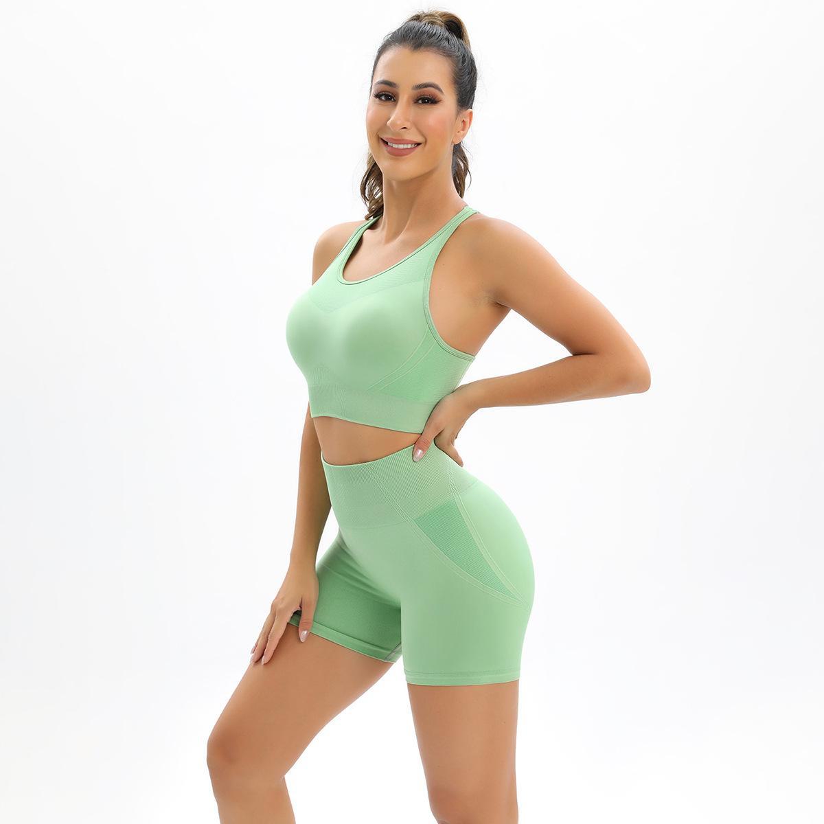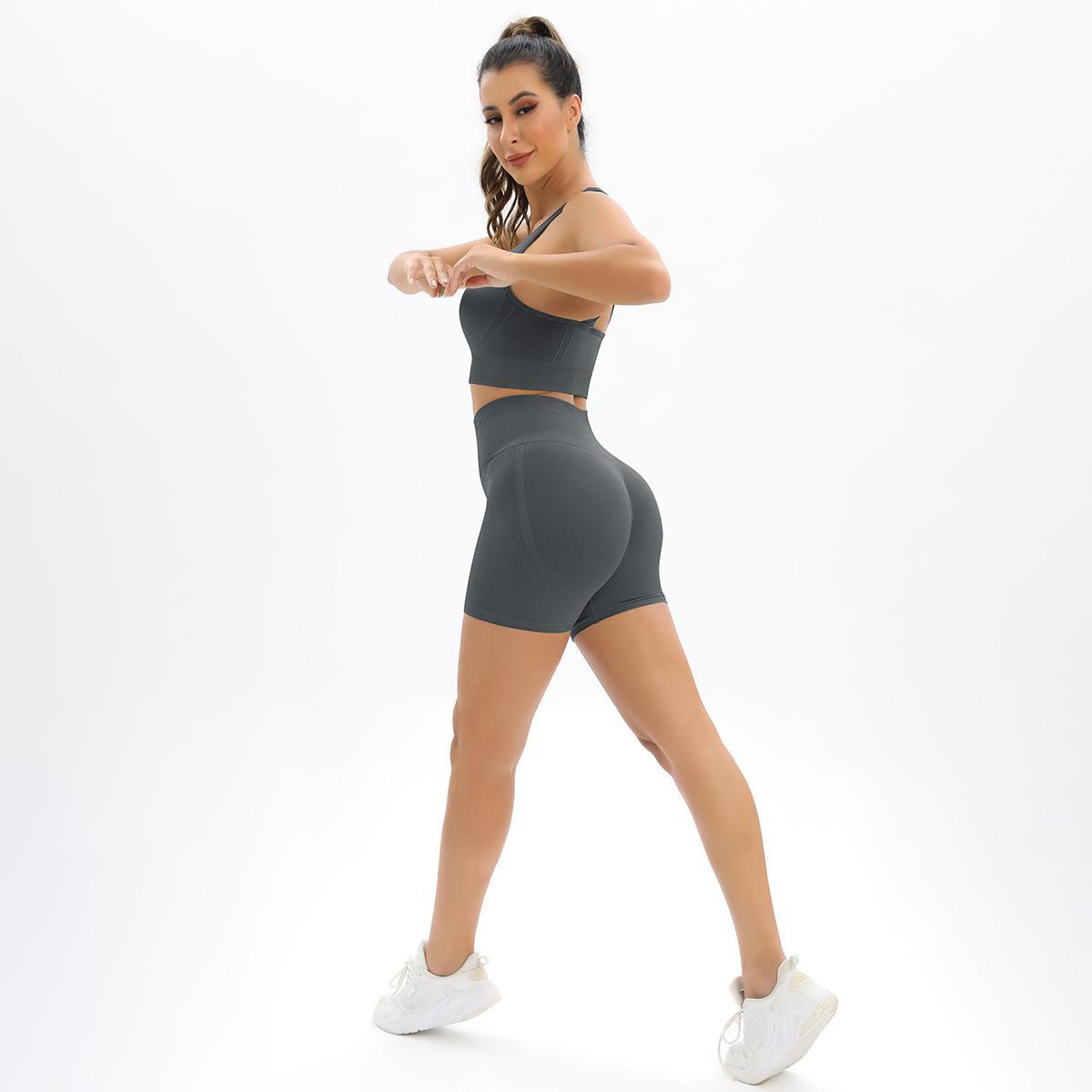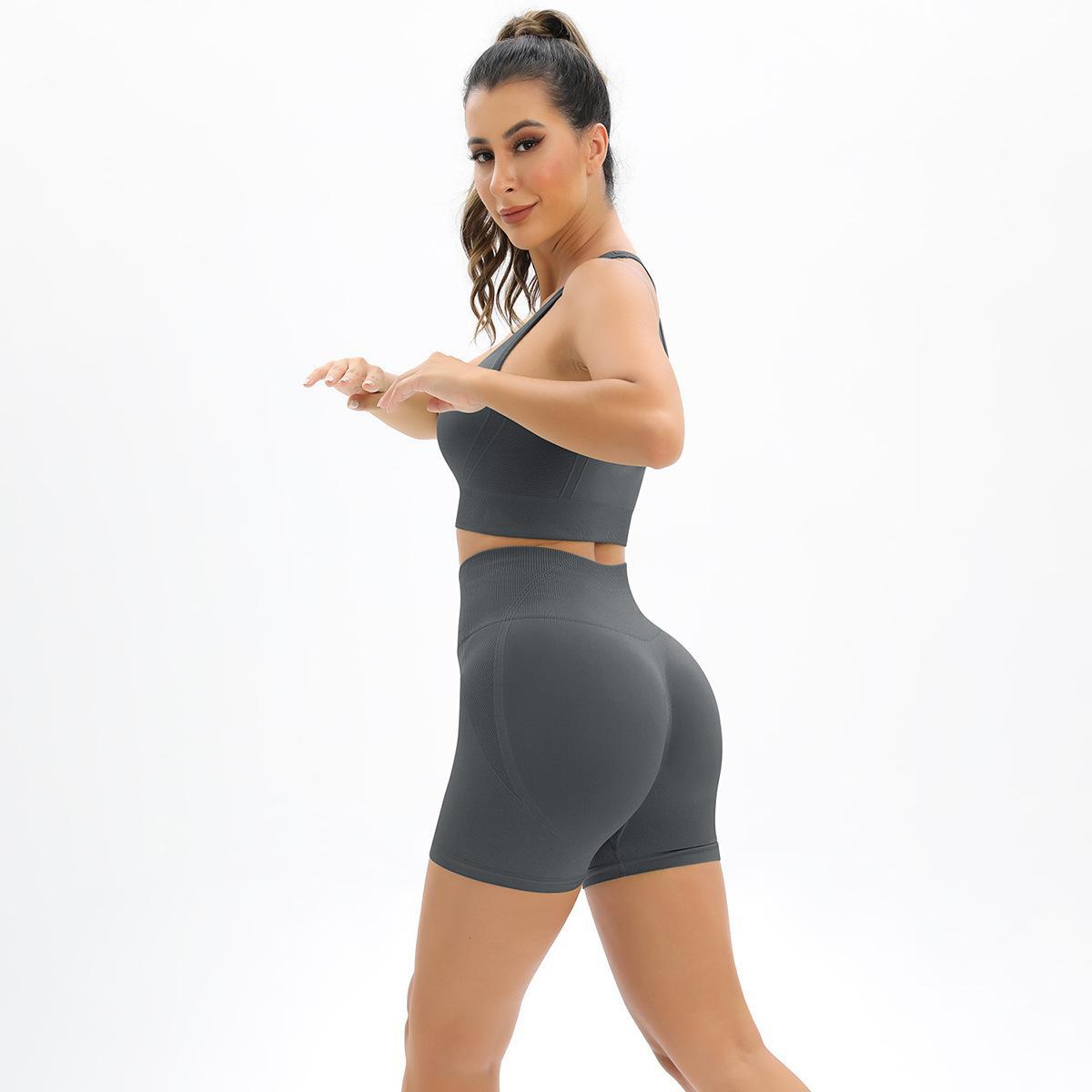 Conjunto de sutiã esportivo de malha sem costura europeia e americana, cintura alta, pêssego, quadril, shorts de ioga, alta elasticidade, esportivo, ioga, fitness
