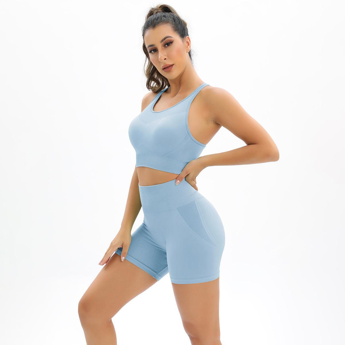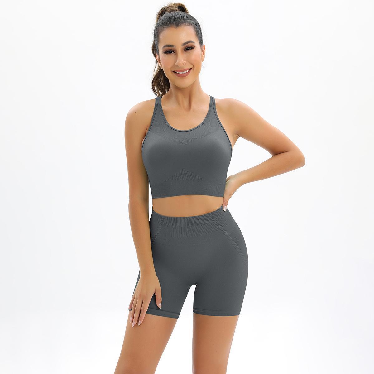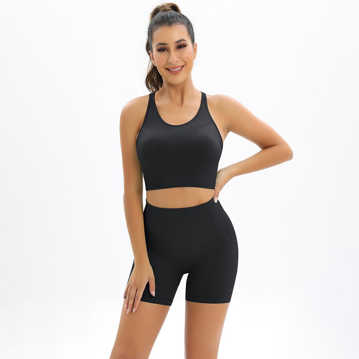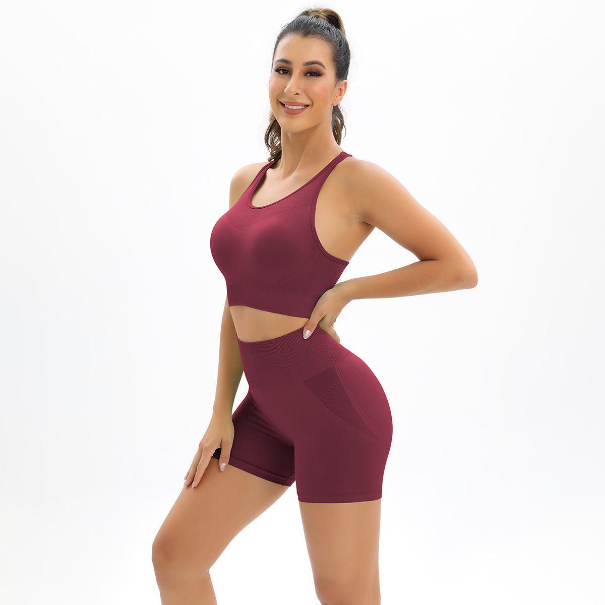 Conjunto de sutiã esportivo de malha sem costura europeia e americana, cintura alta, pêssego, quadril, shorts de ioga, alta elasticidade, esportivo, ioga, fitness