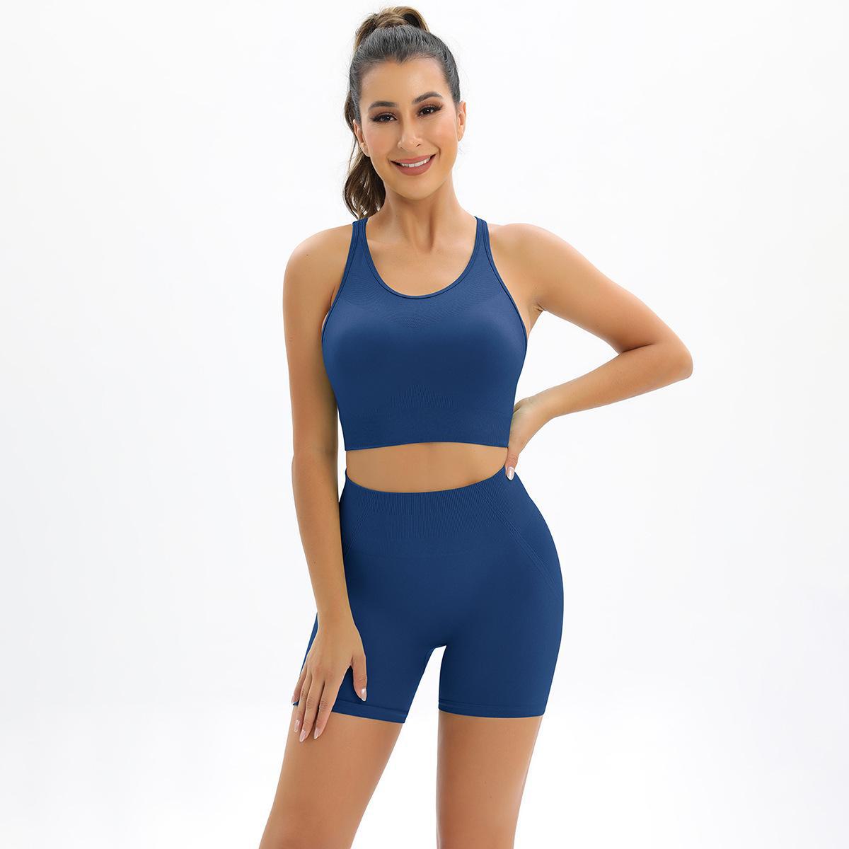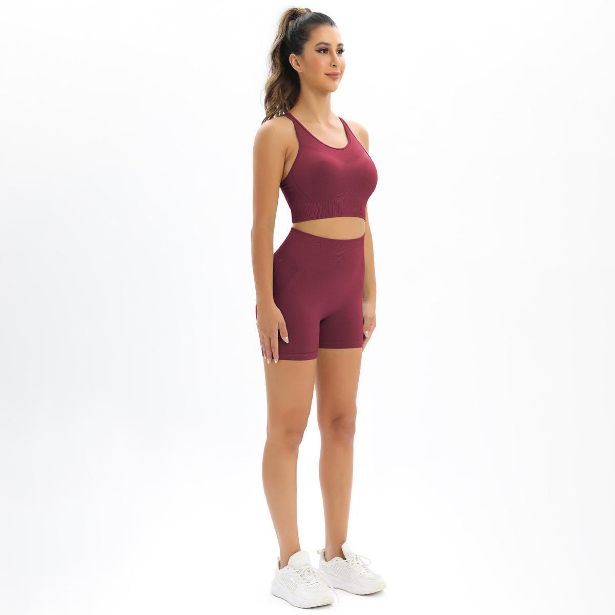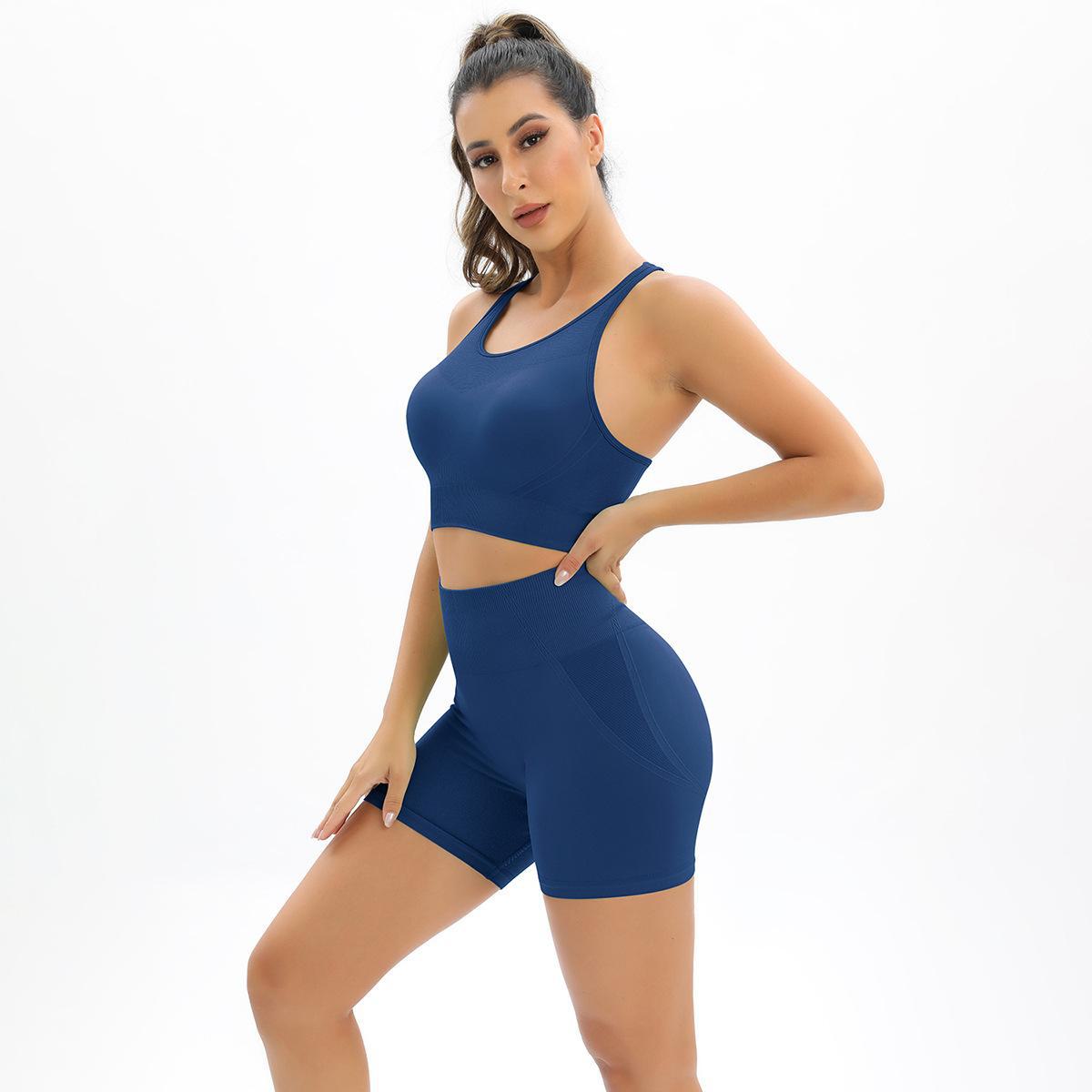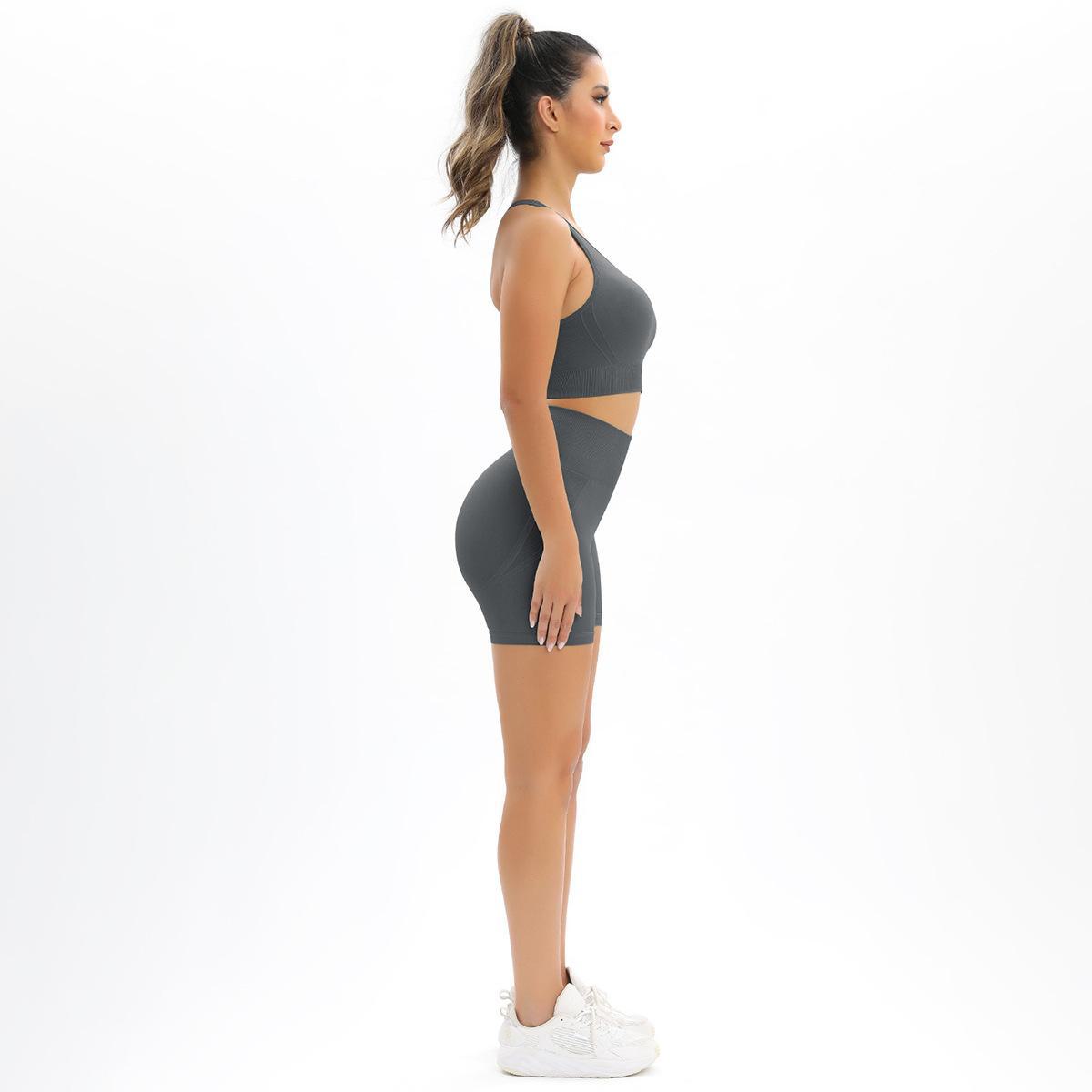 Conjunto de sutiã esportivo de malha sem costura europeia e americana, cintura alta, pêssego, quadril, shorts de ioga, alta elasticidade, esportivo, ioga, fitness