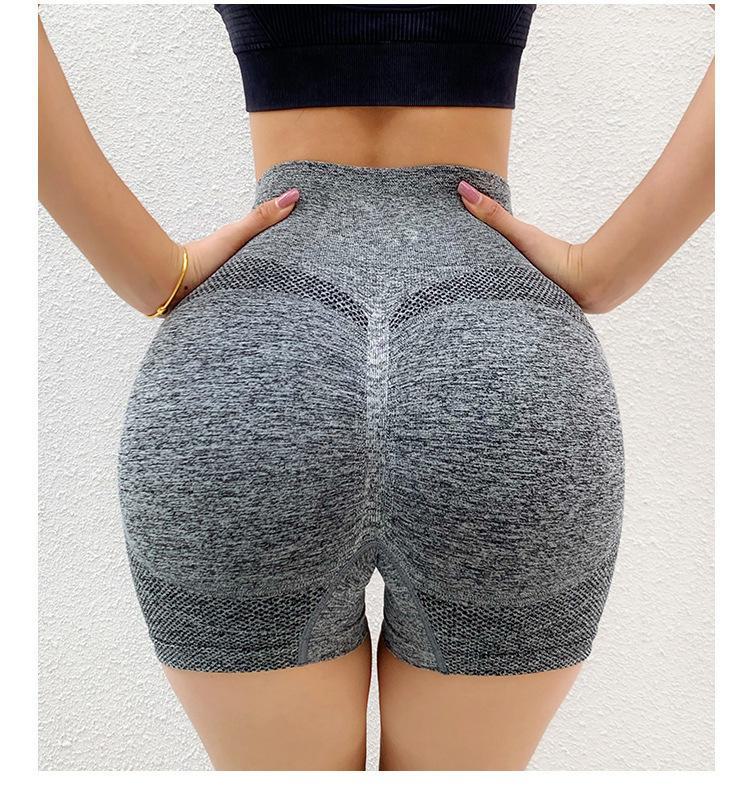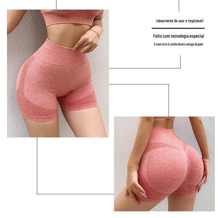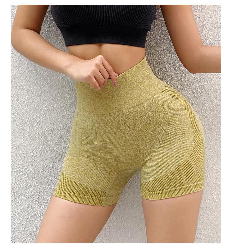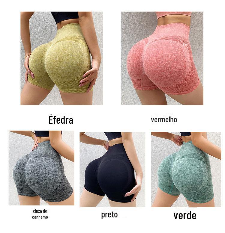 Shorts de fitness esportivos transfronteiriços cintura alta barriga contraindo respirável elástico quadril levantando calças de pêssego calças de ioga de secagem rápida anti-exposição para mulheres