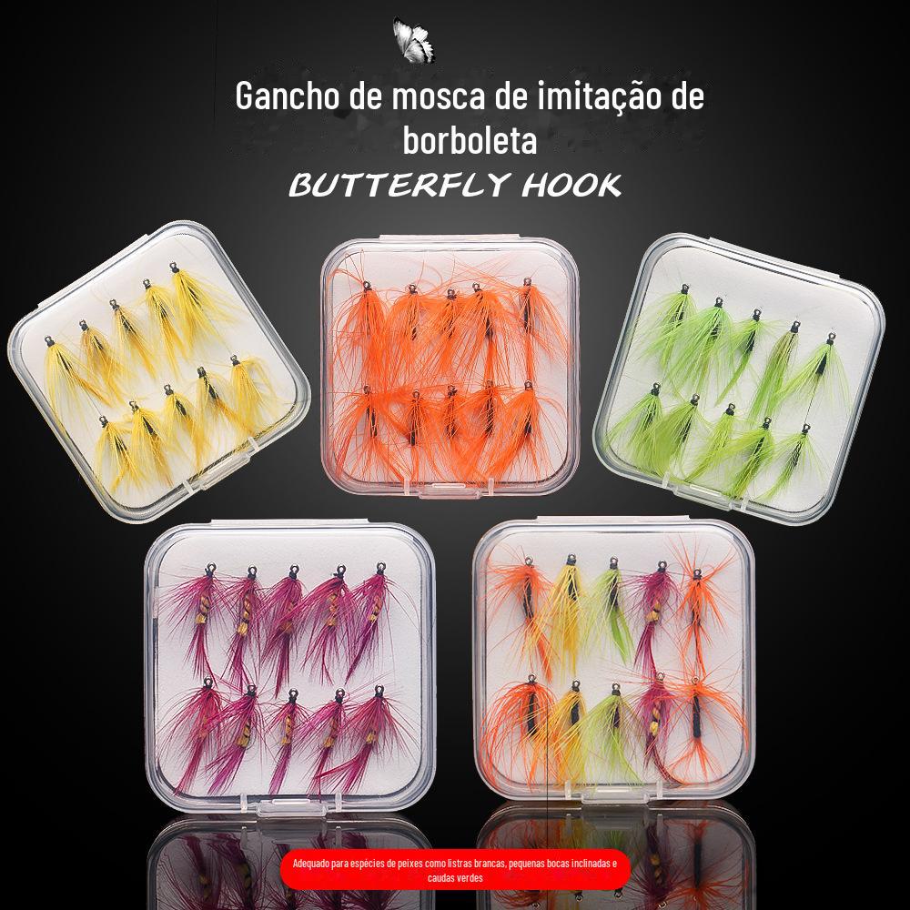 10 px/caixa Luya isca falsa mosca gancho biônico mosca borboleta pena gancho água doce branco listrado boca de cavalo poleiro isca