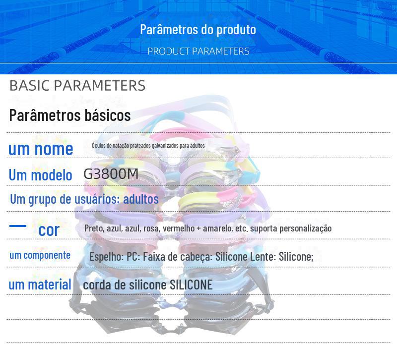 G3800M prata banhado óculos de natação adulto anti-nevoeiro HD óculos de natação esportes de natação fornecimento de fábrica
