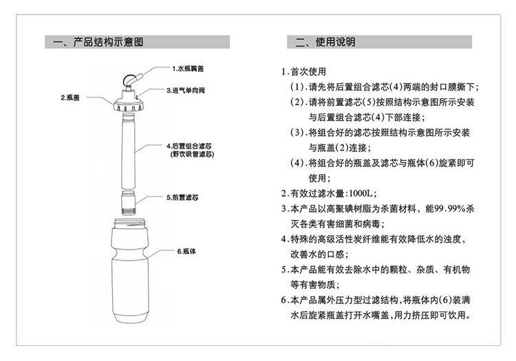 Escopo de uso:Uma ótima ferramenta de água potável para atividades ao ar livre, como viagens, esportes ao ar livre, fitness, camping, emergências que salvam vidas, aventuras ao ar livre, marchas e combates, mineração subterrânea, etc.!